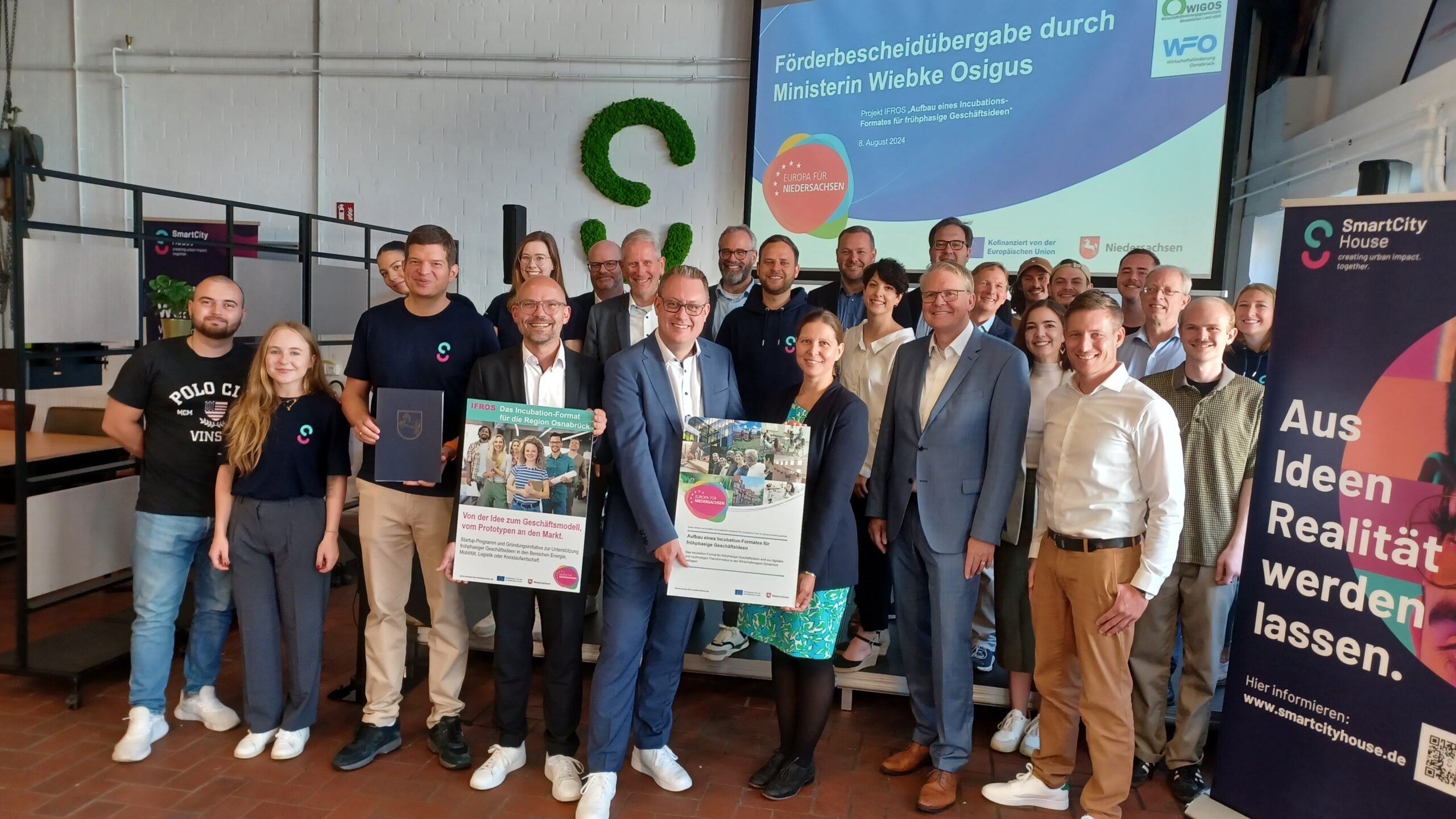 Am Donnerstag übergab Ministerin Wiebke Osigus einen Förderbescheid im SmartCityHouse in Osnabrück. Mit dem Geld sollen Menschen in der Region Osnabrück dabei unterstützt werden, Geschäftsideen zu entwickeln und Start-ups zu gründen.