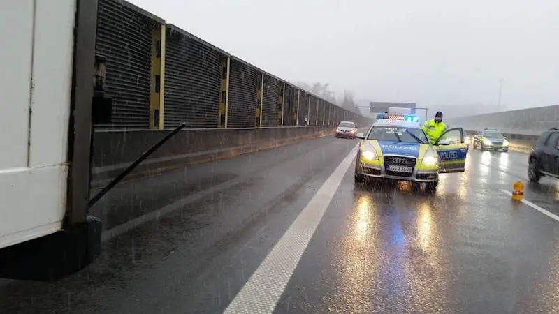 Nach ersten Informationen kam es zu dem Unfall, als ein PKW in die rechte Fahrspur wechseln wollte und dabei das Heck eines neben ihm fahrenden LKW touchierte.
