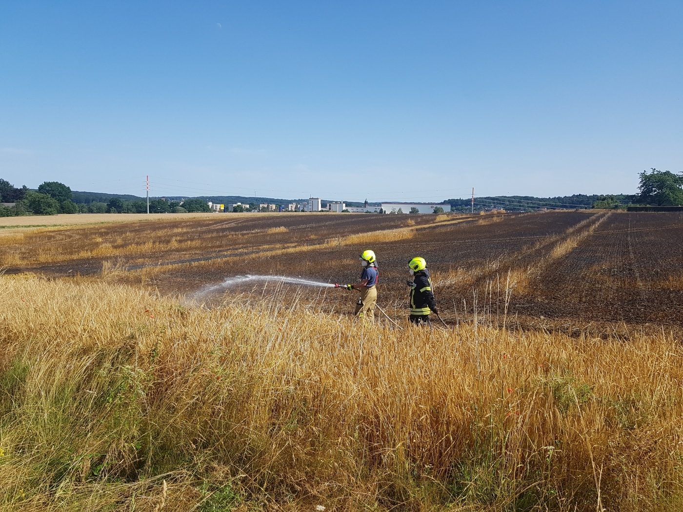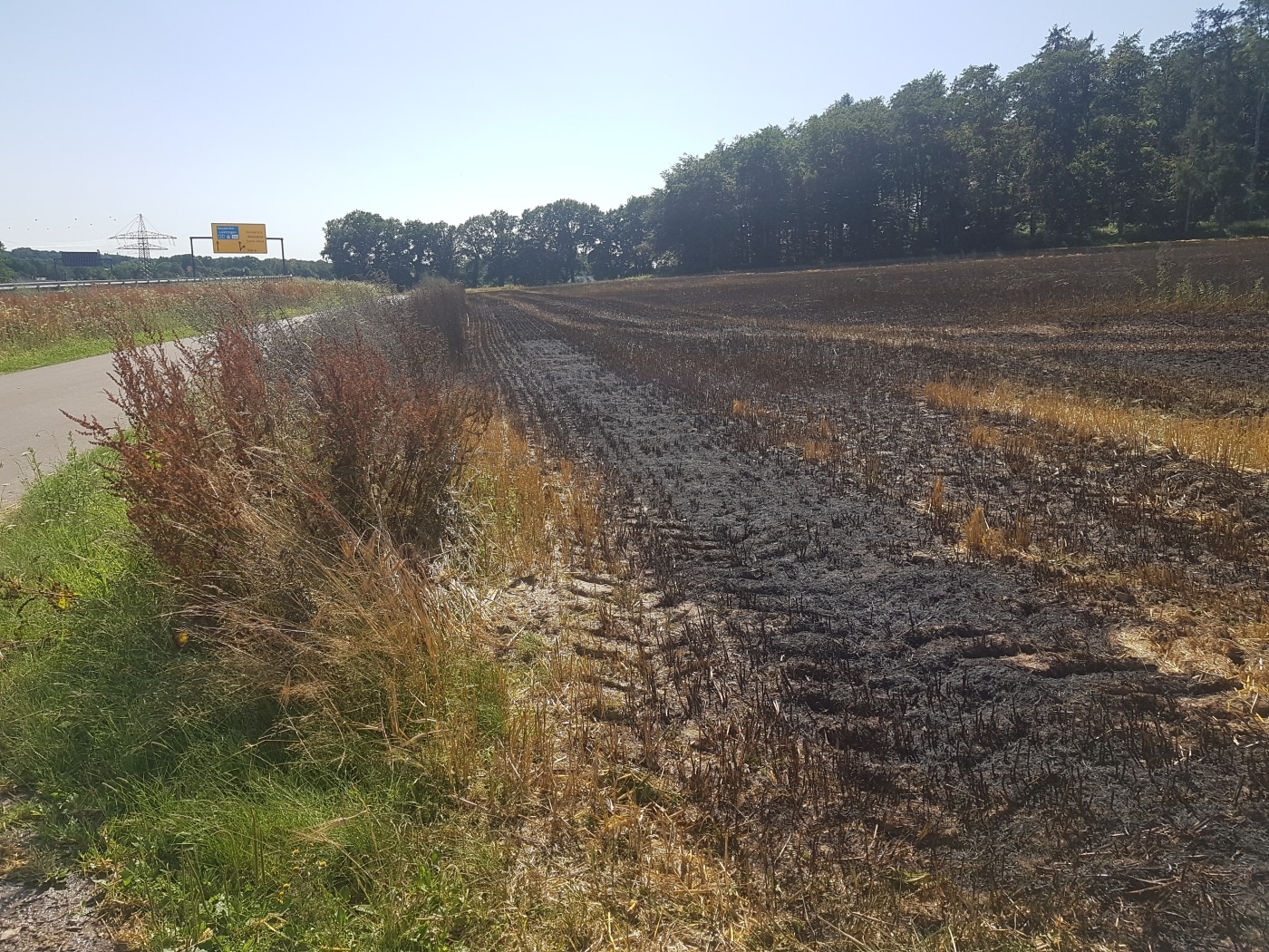 So gelang es, die Flammen noch rechtzeitig aufzuhalten. „Das gute Teamwork von Feuerwehr und Landwirten war in dieser Lage essentiell.“, resümierte Pressesprecher Seeger. Das rund drei Hektar große Feld brannte jedoch fast vollständig ab. Die Flammen liefen bis zur Seite neben der Bundesstraße B65/B51.