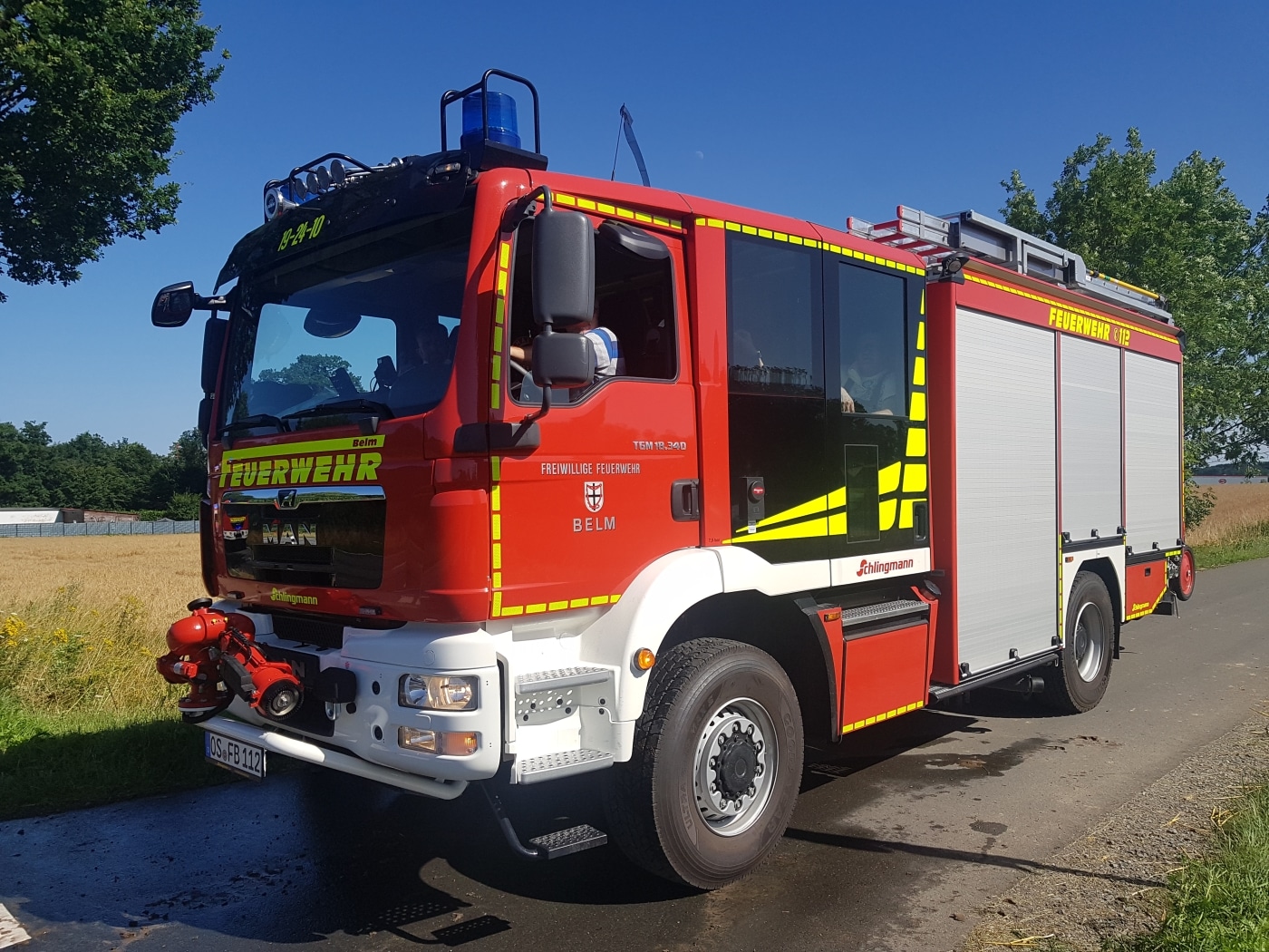 Vor Ort war ein Feld bei Mäharbeiten in Brand geraten. „Als die ersten Kräfte eintrafen, drohte das Feuer auf einen Bauernhof am Feld und einen angrenzenden Wald überzulaufen.“, so Hendrik Seeger. Es stand bereits ein Großteil des Feldes in Flammen, die der Wind weiter trieb. Die Belmer Feuerwehrleute ließen deshalb weitere Feuerwehren nachalarmieren und begannen unmittelbar mit der Brandbekämpfung an den gefährdeten Stellen. Zeitgleich kamen Landwirte zu Hilfe. Mit Güllefässern löschten sie zunächst mit Gülle und später mit Wasser. Und mit einem Grubber, einem Anbaugerät für Traktoren mit Zähnen, zogen sie eine Schneise entlang der Feldränder.
