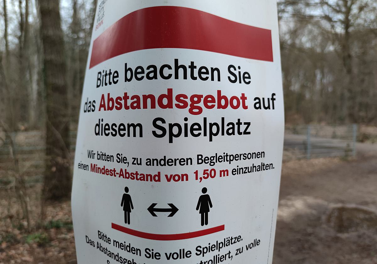 Foto: Hinweis auf Abstandsgebot auf Spielplatz während der Hochphase der Corona-Pandemie, über dts Nachrichtenagentur