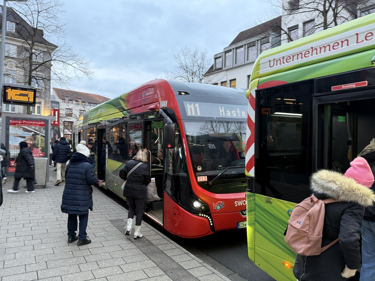 Die Stadt Osnabrück hat sich 2023 zum dritten Mal nach 2013 und 2018 an der SrV-Studie beteiligt. Die aktuellen Ergebnisse zeigen nicht nur einen Anstieg der Fuß- und Radverkehrsanteile, sondern auch eine Wiederbelebung des öffentlichen Nahverkehrs: 8 Prozent aller Wege wurden in der aktuellen Studie mit öffentlichen Verkehrsmitteln (kurz: ÖV) zurückgelegt. Damit liegt der ÖV-Anteil in etwa wieder auf dem Niveau vor der Covid-19-Pandemie (2018: 9 Prozent ÖV am Modal Split). Der Nutzungseinbruch der öffentlichen Verkehrsmittel – insbesondere im Zuge der Lockdown-Maßnahmen 2020 – sind folglich bis zum Erhebungszeitraum der SrV 2023 in etwa wieder ausgeglichen worden. Ein Grund hierfür liegt nach Einschätzung der TU Dresden unter anderem in der Einführung des Deutschlandtickets.