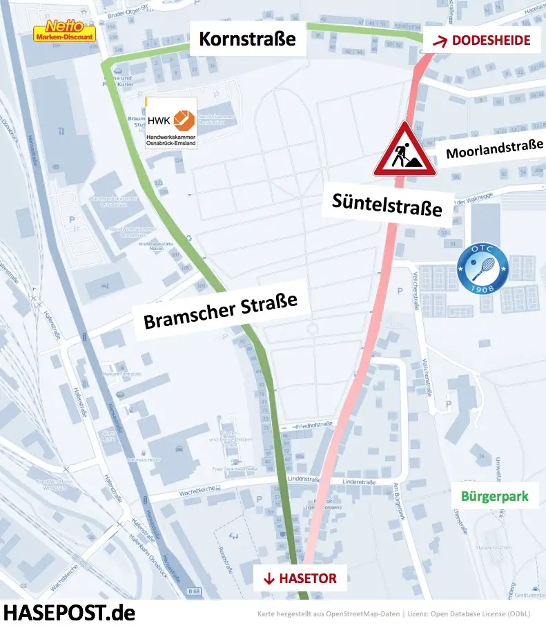 Schlechte Nachrichten für Anwohner der Dodesheide und des Sonnenhügels: Bis Ende Mai wird die Süntelstraße in Höhe der Moorlandstraße gesperrt.