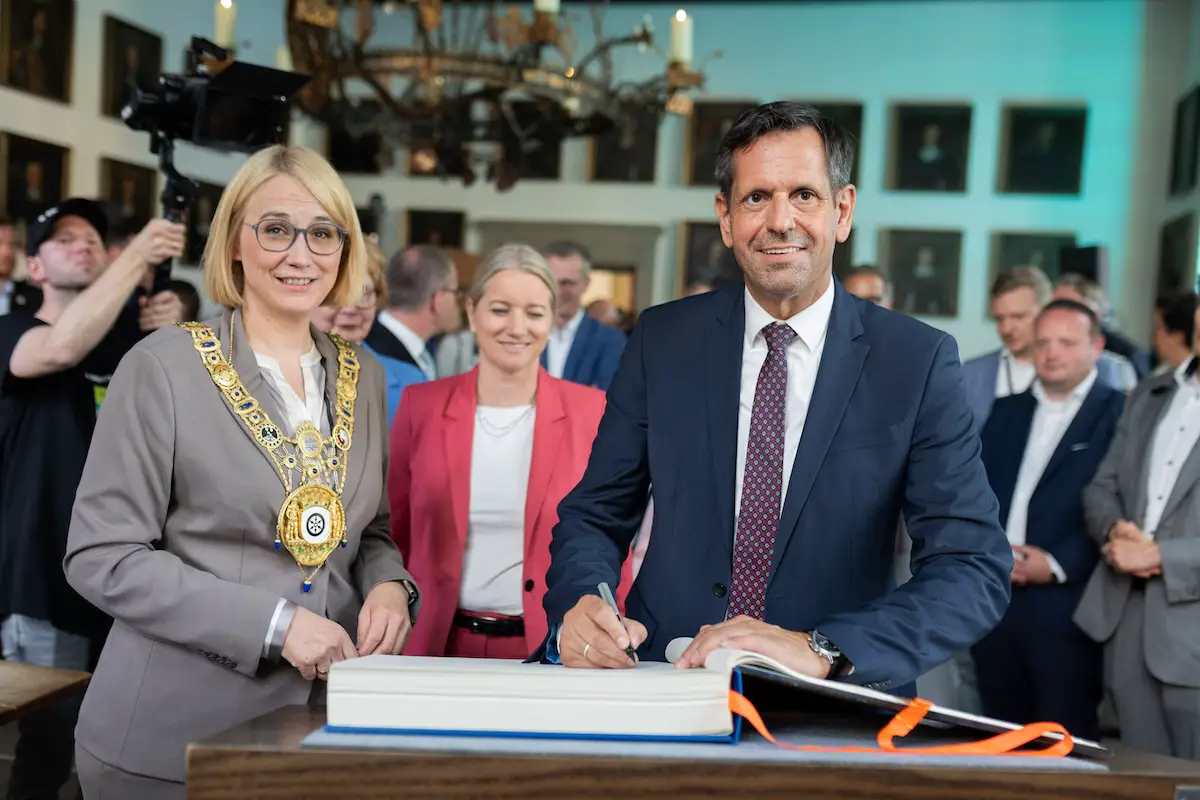 Nach der Eröffnungszeremonie auf dem Markt, der als einer der schönsten Plätze Deutschlands gilt, trugen sich Olaf Lies und die anwesenden Kabinettsmitglieder in das Goldene Buch der Stadt ein. Zu den Unterzeichnern gehörten neben dem Ministerpräsidenten auch Innenministerin Daniela Behrens, Wirtschaftsminister Grant Hendrik Tonne, Justizministerin Kathrin Wahlmann, Europaministerin Melanie Walter und Finanzminister Gerald Heere.