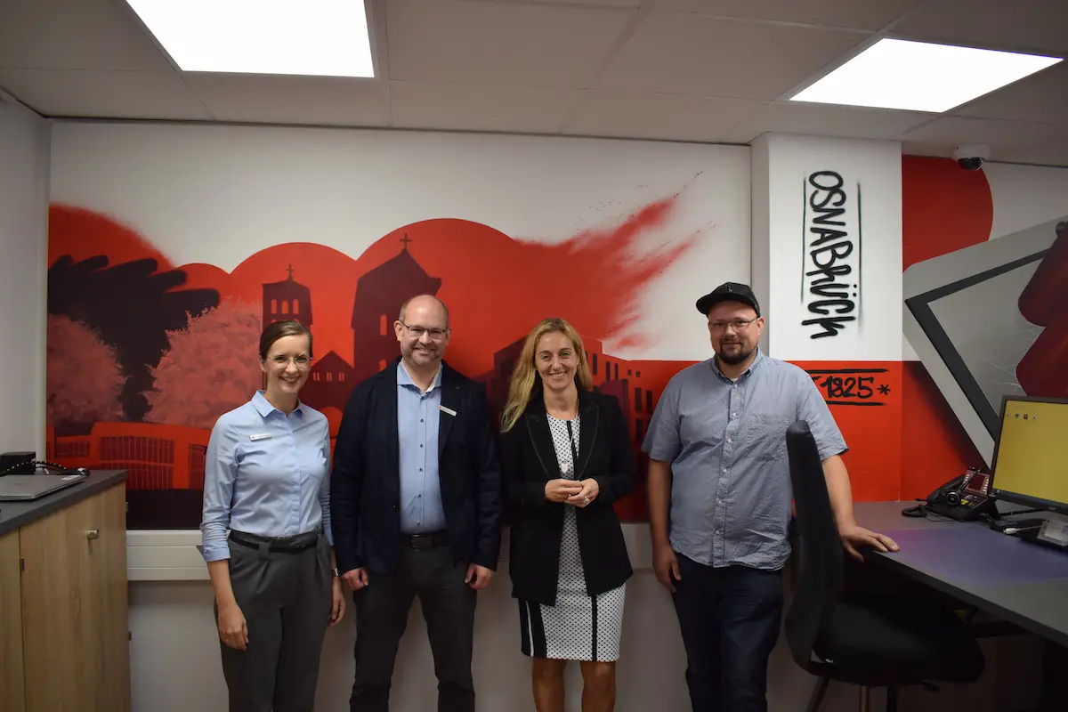 Nancy Plaßmann, Vorstandsmitglied der Sparkasse Osnabrück, erklärt in einer Rede das Motto der Veranstaltung „regional, international, digital, ganz egal #wirhabensdrauf“: „Die Sparkasse Osnabrück gibt es seit 1825 und wir mussten uns immer wieder an den Zeitgeist anpassen. Unsere Regionalität war seit jeher ein Hauptmerkmal der Sparkasse. Heute ist aber auch eine internationale Aufstellung bedeutsam. Besonders junge Menschen verbringen längere Zeit im Ausland und viele ausländische Studierende kommen zu uns. Digitale Medien, wie zum Beispiel unsere Videoberatung, sind wichtig um überall unseren Service anbieten zu können. Es ist also egal wie unsere Kunden zu uns kommen, sie können sich den Weg aussuchen den sie am liebsten mögen.“