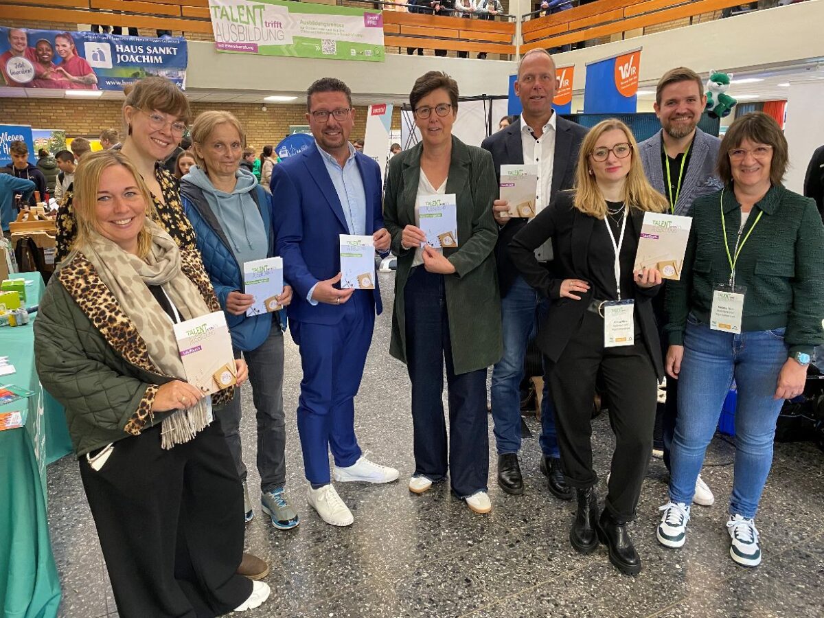 Und das Projekt hat Erfolg: „Unseren Mitarbeiter Jannik Michel, der heute mit mir hier auf der Messe ist, haben wir tatsächlich bei genau diesem Messeformat vor einigen Jahren in Hasbergen gefunden“, erzählte Vanessa Otten, die die Firma Otten Gartengestaltung in Holzhausen mit ihren beiden Geschwistern führt. Oft kennen die Schülerinnen und Schüler die regionalen Unternehmen, haben aber keine Vorstellung davon, welche Berufe sie dort erlernen können und vor allem, welche Aufgaben und Kompetenzen dazu gehören. Deswegen ist die Ausbildungsmesse in Hagen eine gute Chance, um den Schülerinnen und Schülern einen praktischen Einblick in die verschiedenen Ausbildungsberufe zu gewähren.