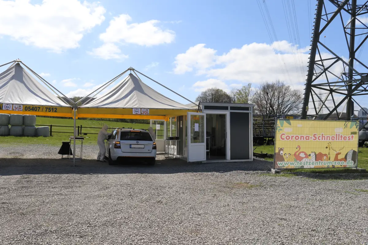 Wie hier im Frühjahr, können auch ab Montag wieder Corona-Schnelltests am „Testzentrum am Zoo“, direkt neben der Einfahrt am Marktkauf Nahne, gemacht werden. Mit den Tests wird auch der Zoo Osnabrück unterstützt. /Foto: Zoo Osnabrück (Jan Banze)