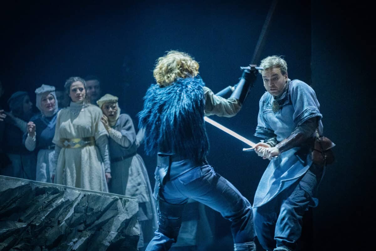 Mit „Artus – Excalibur“ bringt das Theater Osnabrück ein Musical auf die Bühne, das im deutschsprachigen Raum vergleichsweise selten zu erleben ist. Vor rund zehn Jahren war Frank Wildhorns Ritterepos zuletzt in der Region auf der Freilichtbühne Tecklenburg zu sehen. Nun zeigt sich in Osnabrück: Das Werk besitzt trotz dramaturgischer Schwächen weiterhin große szenische und musikalische Wirkungskraft.