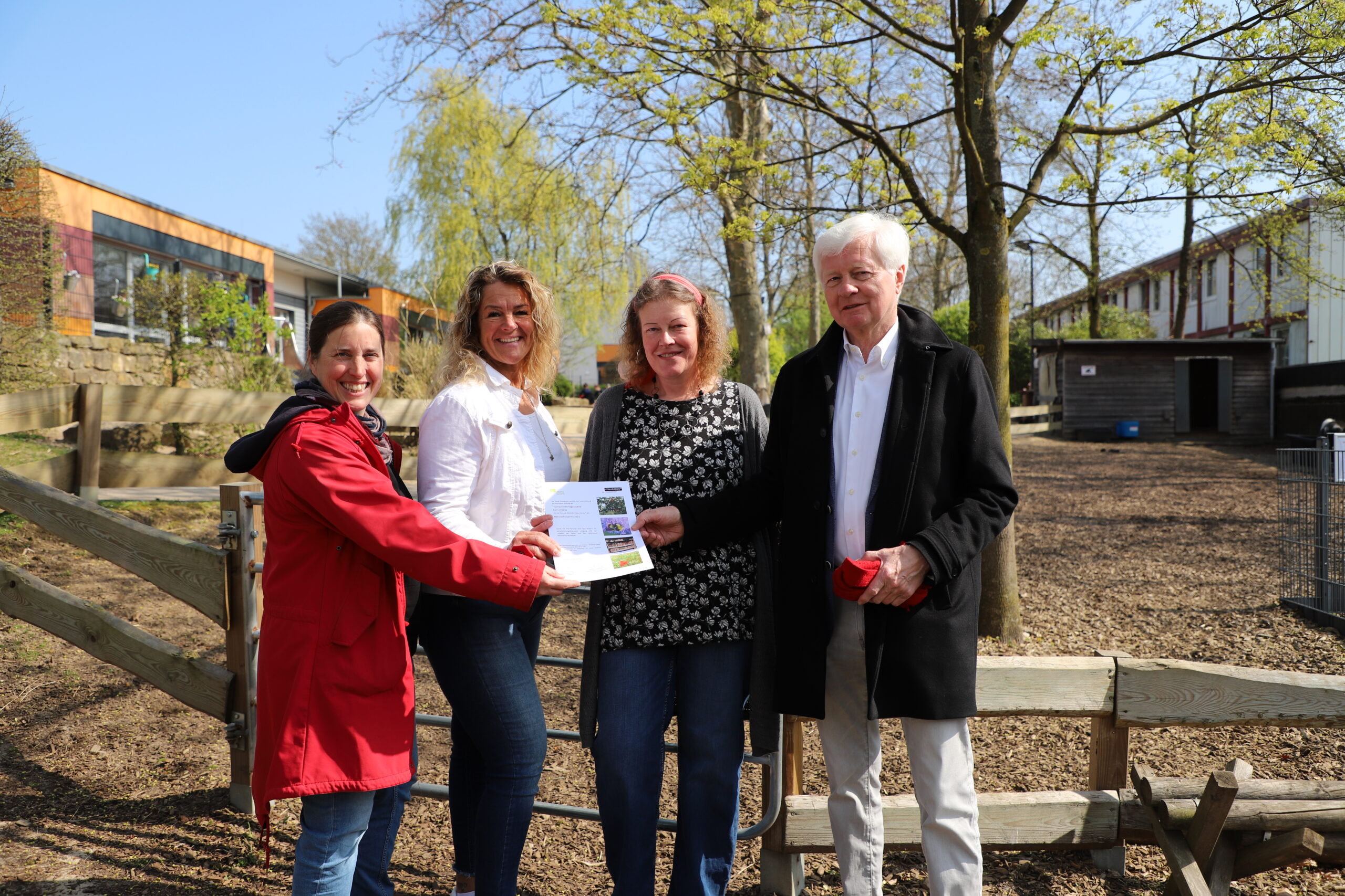 Antonius Fahnemann, Vorstandsvorsitzender der Haarmann-Stiftung, zeigte sich bei einer Führung durch die Kita beeindruckt: „Hier wird deutlich, dass der Naturschutzpreis verdient ist.“ Das sieht auch Wiebke Holste, Leiterin des Fachdienstes Naturschutz und Landschaftsplanung bei der Stadt Osnabrück, so. Für ein noch freies Beet auf dem Kitagelände hatte sie auch direkt einen Tipp parat: „Säen Sie hier doch die Osnabrücker Mischung aus. Damit tun sie etwas für selten gewordene heimische Wildblumen und für blütenbesuchende Insekten.“