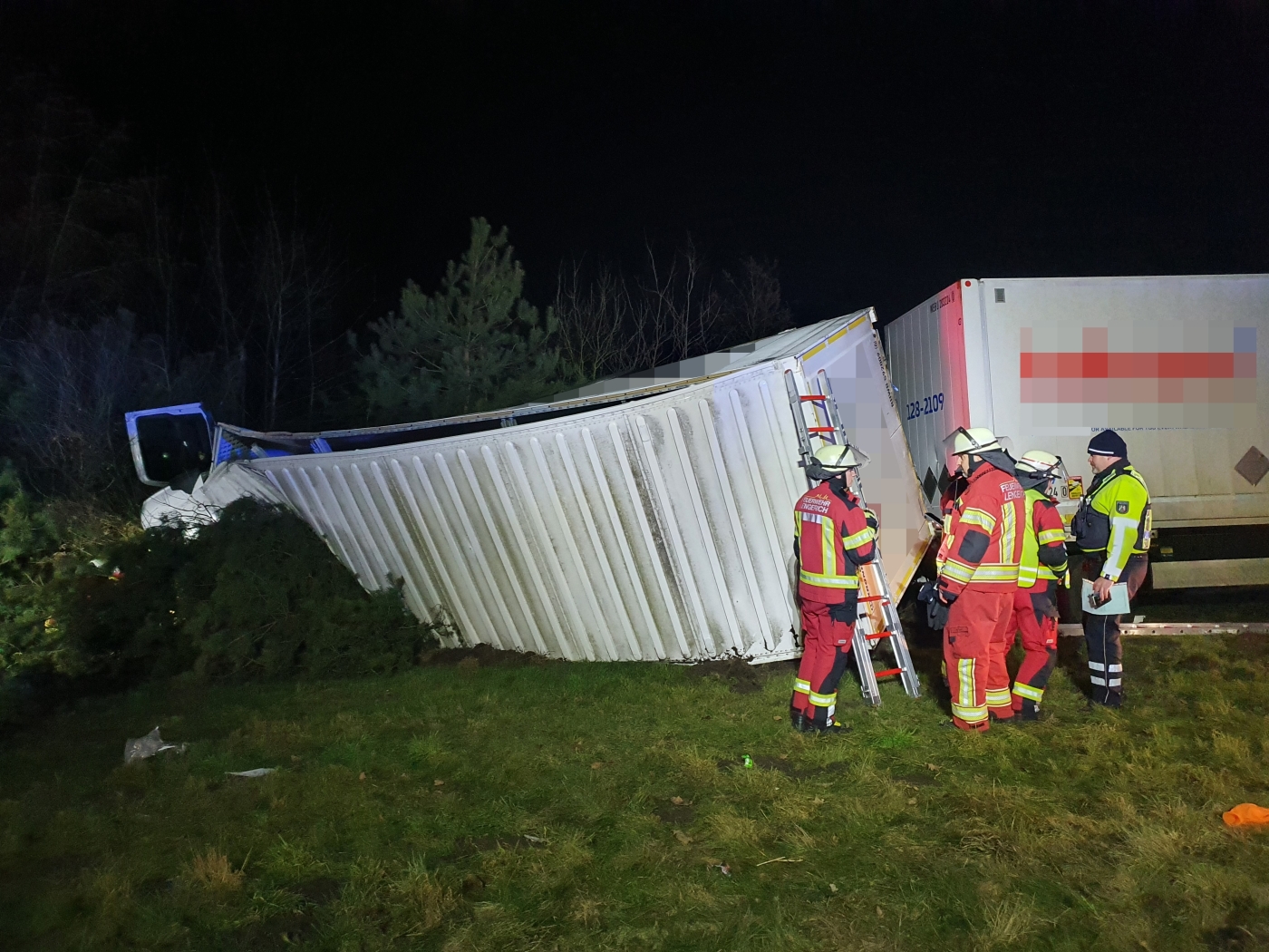 Der Versuch von Ersthelfern und Einsatzkräften den 63-Jährigen zu reanimieren blieb ohne Erfolg. Der Fahrer des umgekippten Gliederzuges erlitt nach ersten Erkenntnissen lebensgefährliche Verletzungen. Nach der Erstversorgung durch das Team eines Rettungswagens und einen Notarzt wurde der 43-jährige Mann in eine Klinik gebracht. Der Fahrer des Silozuges blieb unverletzt.