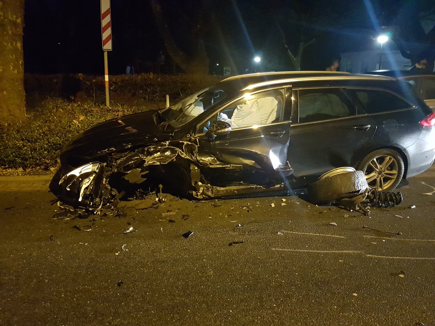 Beim Zusammenstoß kam es zu einem Knall, der mehrere Anwohner aufschreckte. Einige von ihnen sahen dann, dass der BMW-Fahrer versuchte, von der Unfallstelle zu flüchten. Er konnte kurz darauf aber von der Polizei in Gewahrsam genommen werden.