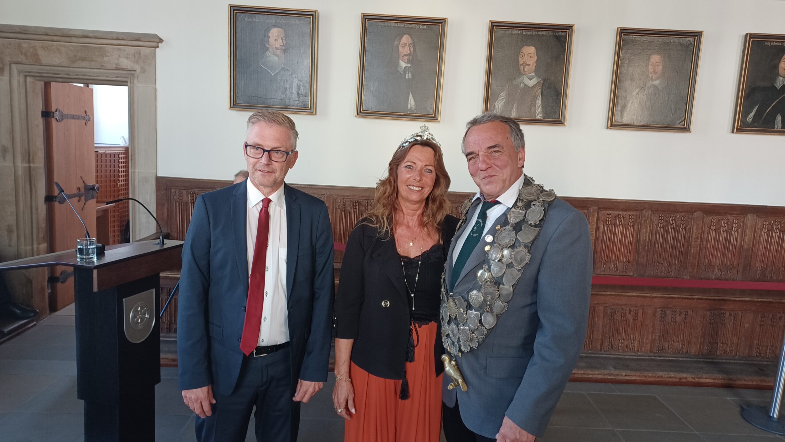 Im Rathaus Osnabrück empfing Ratsmitglied Frank Henning als Vertretung für Oberbürgermeisterin Katharina Pötter Schützenbrüder und Schützenschwestern zur feierlichen Übergabe der Schützenkette. Bei seiner Rede sprach der SPD-Politiker von den historischen Werten und die Besonderheit von Schützenvereinen. Die Vereine und die Schützenfeste verbänden Tradition und Moderne. Außerdem erwähnt Henning, der selbst Mitglied im Schützenverein ist, die Aufgabe der Schützen in der Vergangenheit. Früher verteidigten sie die Stadt vor äußeren Feinden. Heute hingegen ständen sie für Brauchtum, Geselligkeit und gute Tradition.