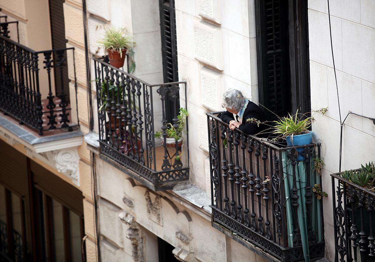 Foto: Seniorin schaut von einem Balkon, über dts Nachrichtenagentur