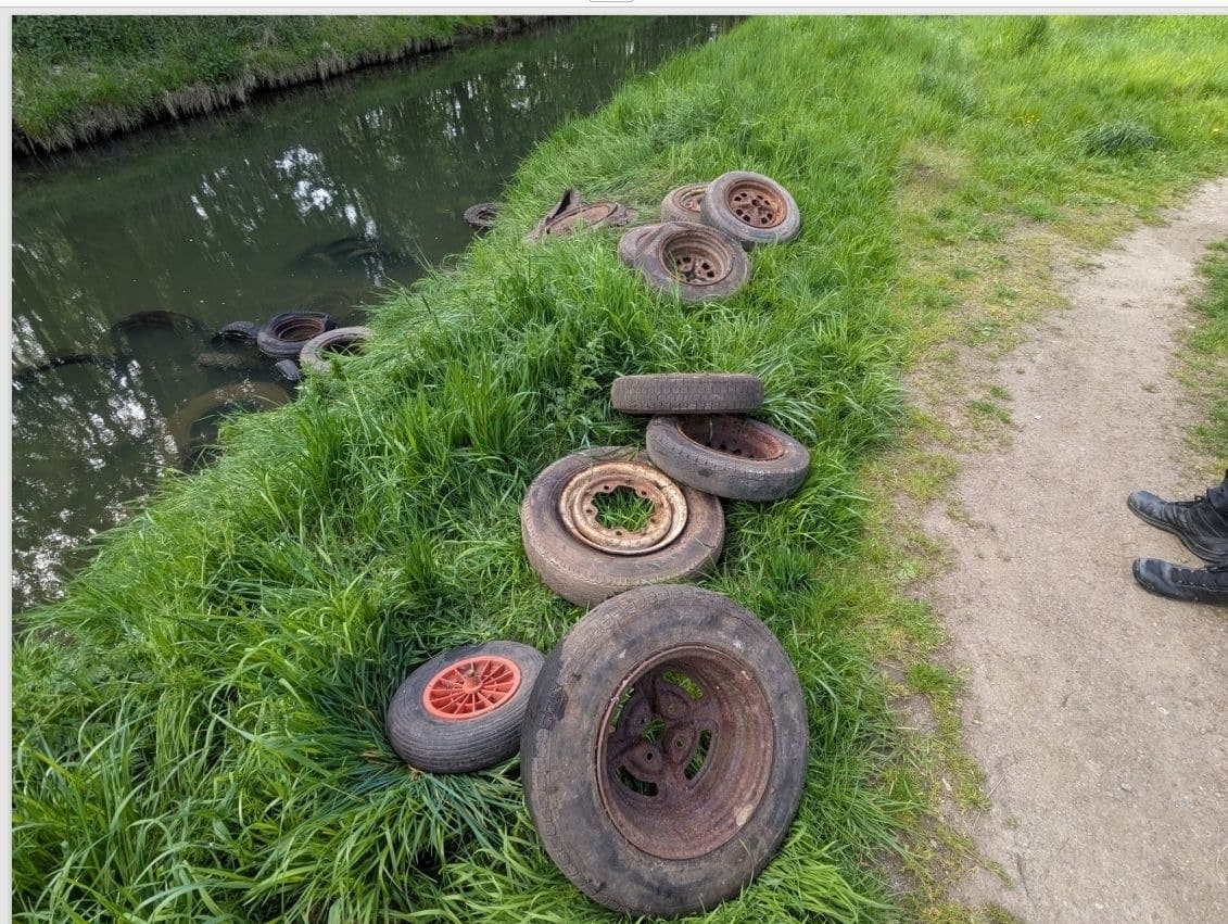 Bislang unbekannte Täter haben in der Else und am Ufer des Flusses in Melle etwa 100 Altreifen entsorgt.