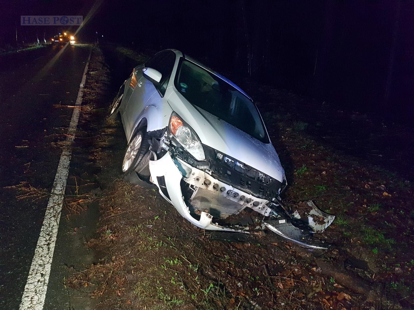 Zuvor hatten zwei PKW unabhängig voneinander die Icker Landstraße zwischen der B51/B65 und dem Kreisel am Power Weg befahren. In einem Straßenstück durch den Wald war jedoch ein Baum umgekippt und lag quer über der Fahrbahn. Beide Autos konnten in Dunkelheit und Regen nicht mehr rechtzeitig bremsen und fuhren gegen den Stamm.