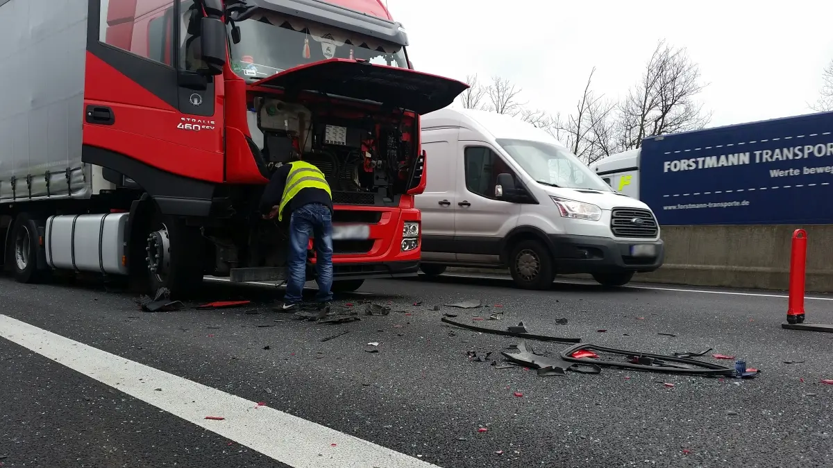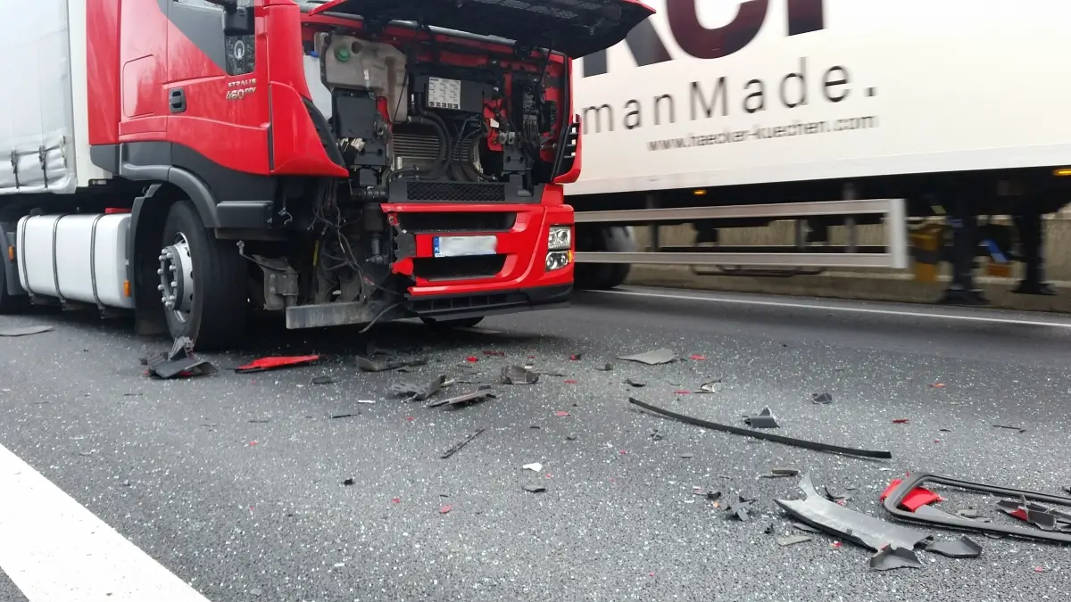 PKW kollidiert mit LKW und wird von folgendem Sattelzug erfasst