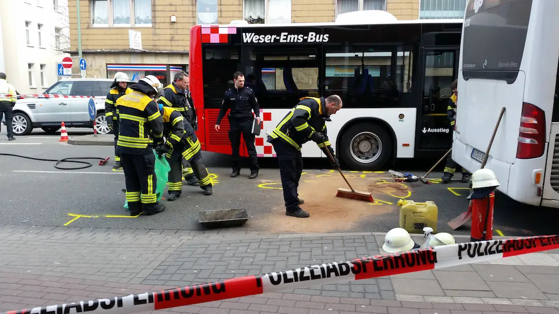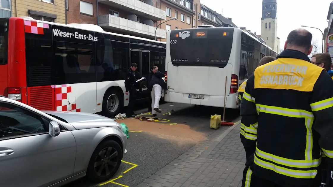 Beim Versuch einen Bus zu überholen, stieß heute Mittag ein Rollerfahrer mit einem weiteren Bus und einem PKW auf der Iburger Straße stadtauswärts zusammen. Der Rollerfahrer wurde bei dem Unfall schwer verletzt. Für die Unfallaufnahme und die Aufräumarbeiten wurde die Straße zeitweise in beide Fahrtrichtungen gesperrt.