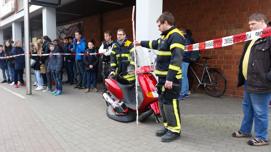 Der verletzte Rollerfahrer wurde vom Rettungsdienst in ein Krankenhaus gebracht. Durch ausgelaufenen Kraftstoff bestand Brandgefahr am Unfallort. Die Feuerwehr stellte den Brandschutz während der Unfallaufnahme sicher und reinigte anschließend die Fahrbahn von ausgelaufenen Flüssigkeiten und Fahrzeugsplittern. Nach rund einer Stunde konnte die Straße wieder freigegeben werden. Im Bereich benachbarter Straßen und des Rosenplatzes kam es bis dahin zu Staus und zähfliessendem Verkehr.