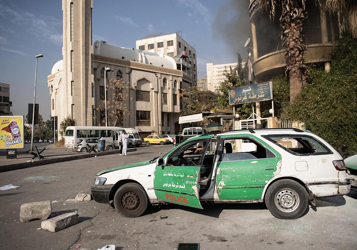 Foto: Beschädigtes Polizeiauto in Damaskus am 08.12.2024, Ammar Ghali/AA/Abaca/ddp, via dts Nachrichtenagentur