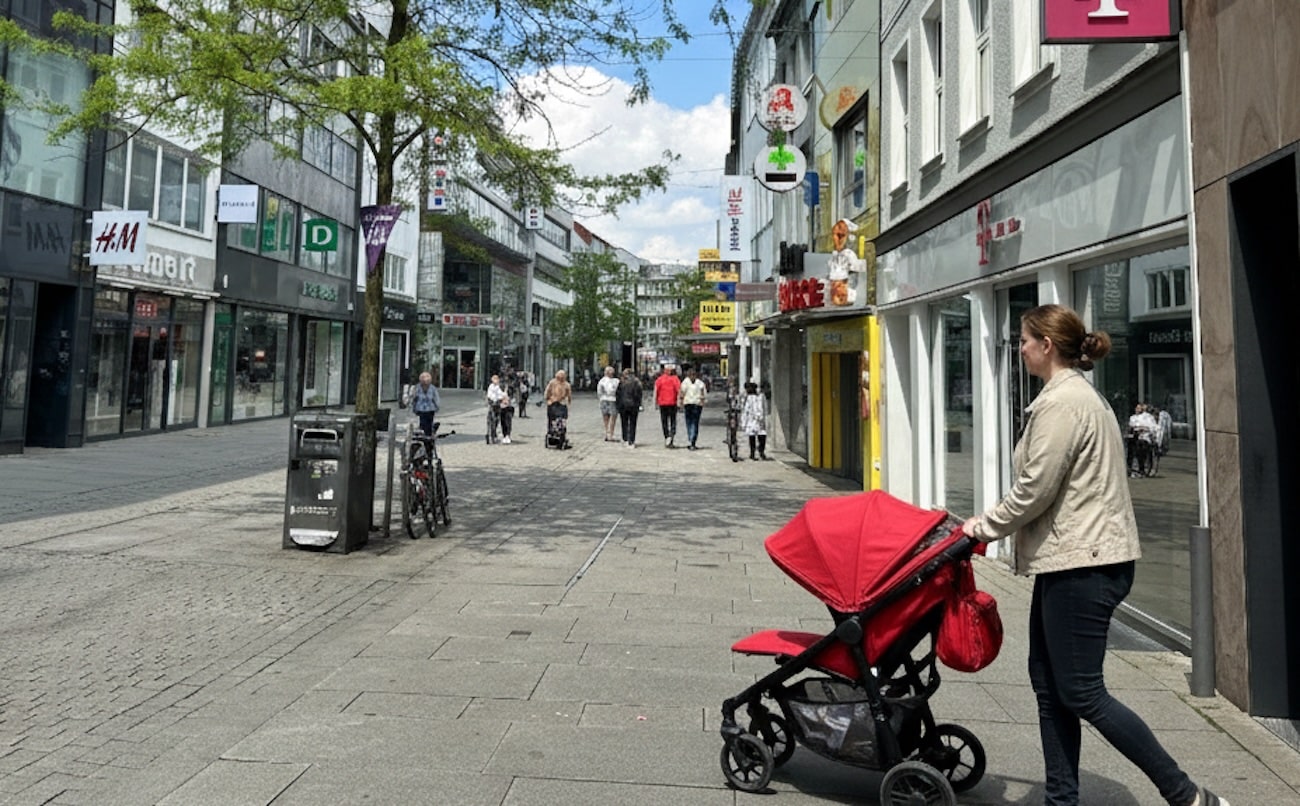 mit dem Kinderwagen in Osnabrück / Foto: Pohlmann, mit KI bearbeitet