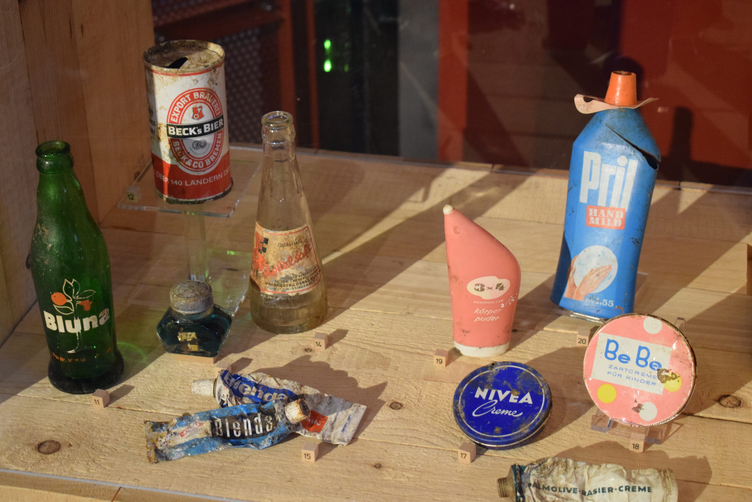 Ein Teil der Ausstellung wird von Birgit Schad, Gründerin der City Cleaners Germany, beigesteuert. Sie zeigt besondere Fundstücke, die sie bei ihren Müllsammelaktionen in der Region Osnabrück gefunden hat. Zu ihren ältesten Fundstücken gehört ein Deo-Stift der Marke BAC der zwischen 1952 und 1972 hergestellt wurde. „Es ist unglaublich, denn wenn man das Deo öffnet, dann riecht man immer noch den Duft“, erklärt Birgit Schad. „Und das obwohl das Deo nun seit ungefähr 60 Jahren im Wald lag.“ Neben dem Deo liegen noch weitere Fundstücke in der Ausstellungsvitrine: unter anderem eine alte Pril-Flasche, eine Nivea-Dose und alte Zahnpasta-Tuben. „Ich möchte, dass die Leute durch die Ausstellungsstücke erkennen, dass achtlos weggeworfene Gegenstände in der Natur jahrzehntelang weiterexistieren“, erklärt Schad. „Ich habe eine Chips-Tüte mit dem Ablaufdatum 2001 gefunden, die könnte man abwaschen und wiederverwenden – so unverändert ist die.“