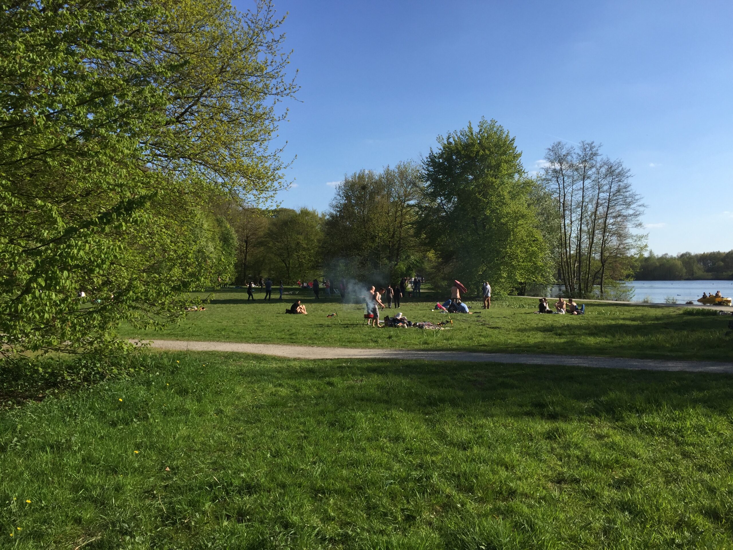 Auch in diesem Jahr waren wieder hunderte kleinere und größere Gruppen, und bei Temperaturen von „fast 20 Grad“ auch einige Familien, am See hinter dem Heger Holz.