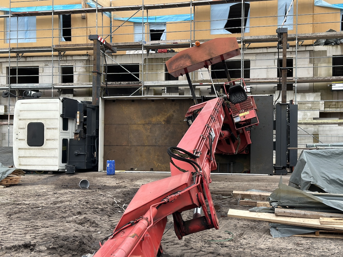 Der Ausleger schlug zwischen zwei noch nicht fertiggestellten Häusern auf einer Freifläche auf. Obwohl auf den Baustellen zu dem Zeitpunkt noch rege gearbeitet wurde, kam es lediglich zu einem Sachschaden am Kran, der nun wieder aufgestellt werden muss.