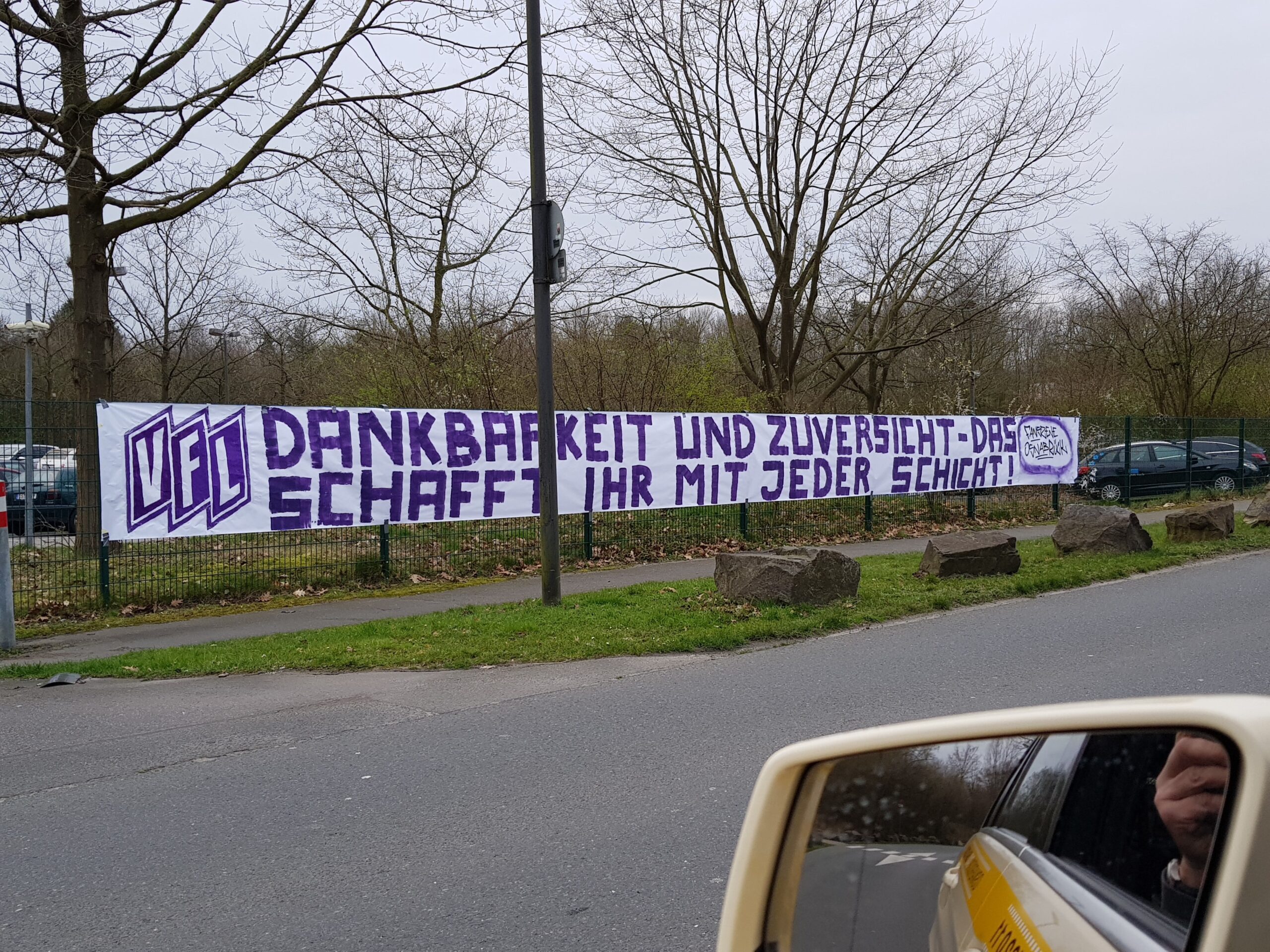 In der Nacht, von Donnerstag (19. März 2020) auf Freitag, haben sich einige VfL-Ultras eine schöne Überraschung für das Personal des Marienhospitals und Klinikums Osnabrück überlegt: Sie haben große Banner mit Danksagungen gut sichtbar vor die Krankenhäuser gehängt.