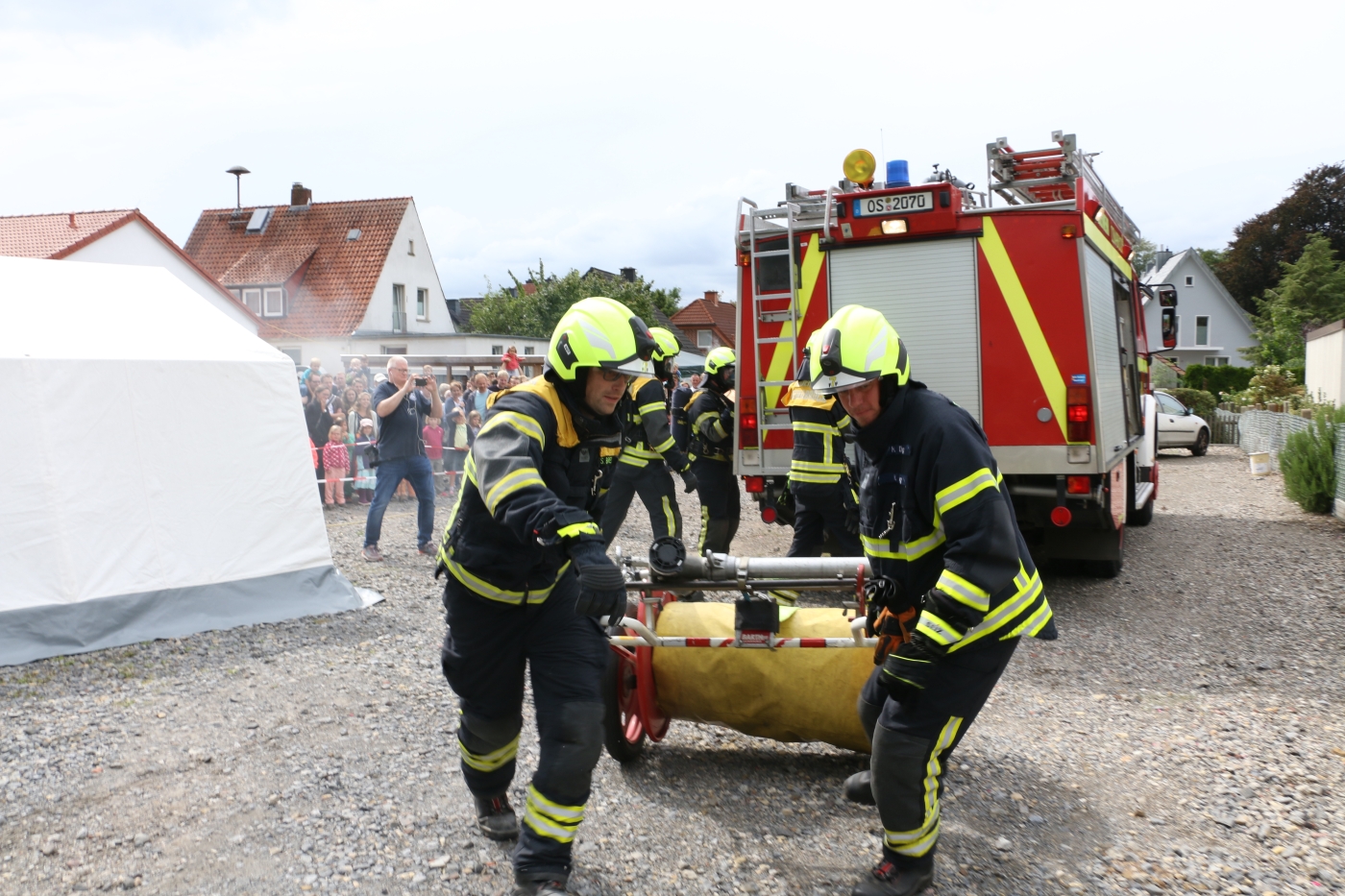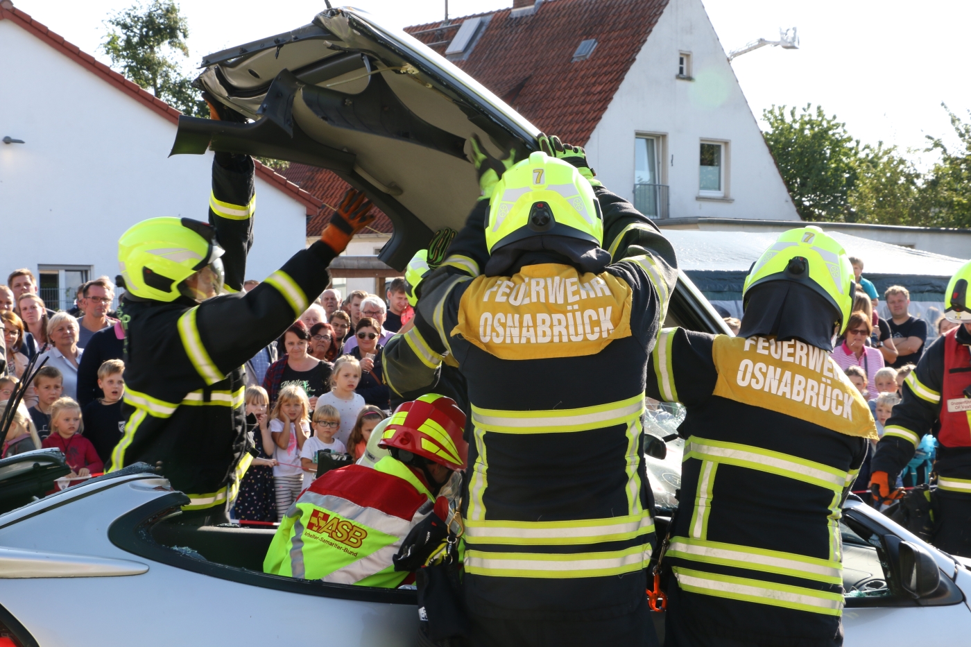 In der Abschlussübung zeigte die Wehr sich zusammen mit dem ASB in ihrer Spezialdispziplin, der Technischen Hilfeleistung. Gemeinsam wurde ein Verkehrsunfall geprobt und den Zuschauern das Vorgehen erklärt. Auf das Leistungsniveau seiner Leute in diesem Breich ist Ortsbrandmeister Ingo Imwalle besonders stolz. Neben der Brandbekämpfung hat jede Freiwillige Feuerwehr in Osnabrück auch eine Spezialaufgabe. Die Voxtruper sind hierzu mit einem Rüstwagen ausgestattet und bringen ihre Expertise in Einsätzen mit technischen Rettungsszenarien ein.