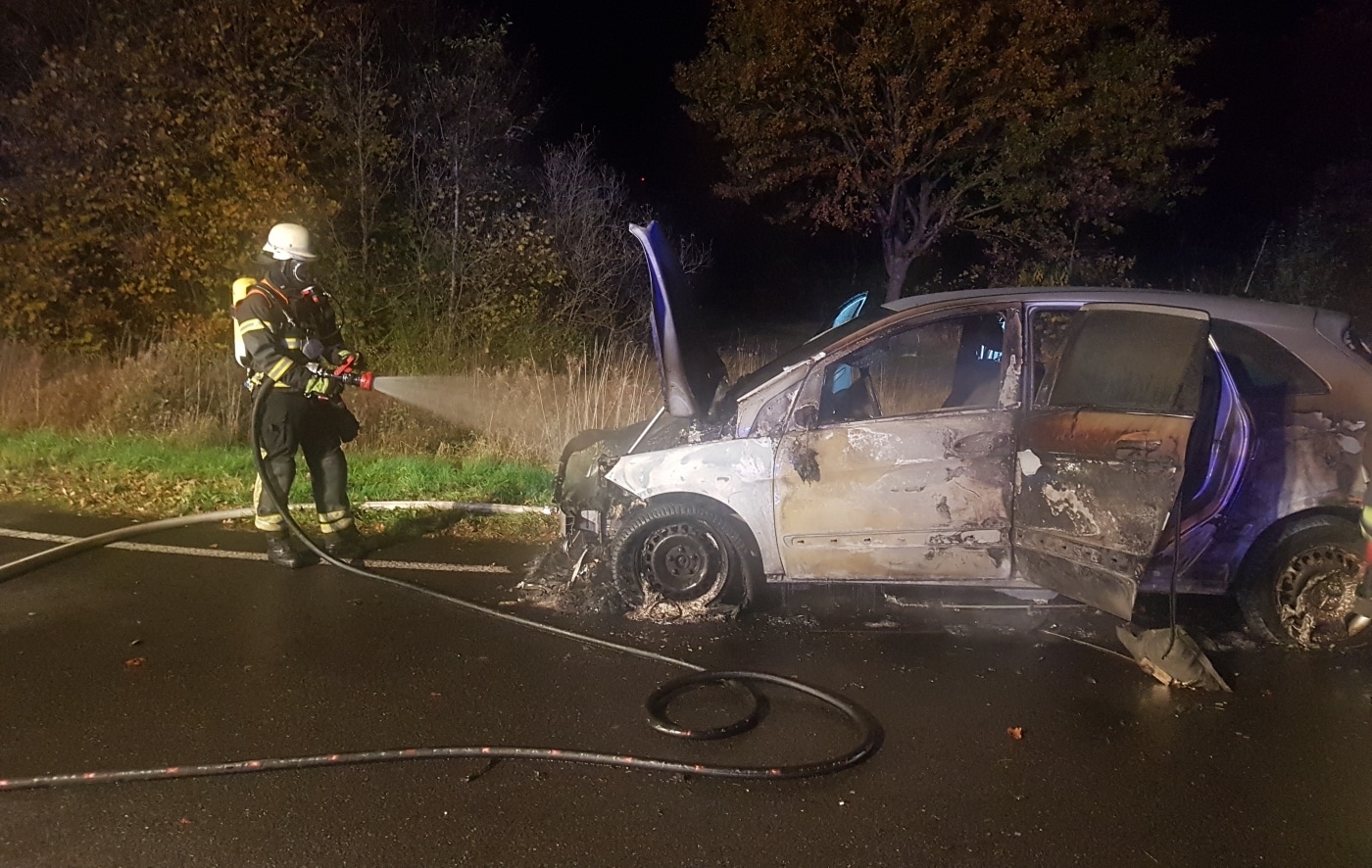 Bei Eintreffen der Feuerwehr stand das Auto bereits im Vollbrand. Der Wagen war zuvor aus Richtung Alfhausen kommend in Richtung Bramsche-Hesepe gefahren, als die Insassen das Feuer bemerkten. Sie schafften es, den Wagen am Abzweig zur Ostlandstraße zu stoppen und ihn zu verlassen. Nach den Erkenntnissen vor Ort wurde niemand von ihnen verletzt.
