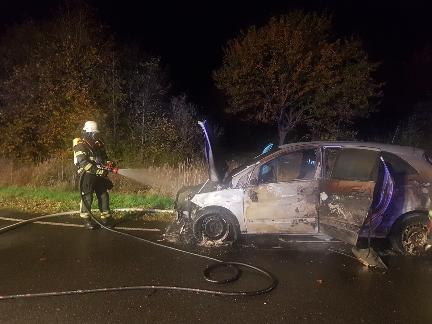 Voll besetztes Auto gerät auf B68 bei Bramsche in Brand