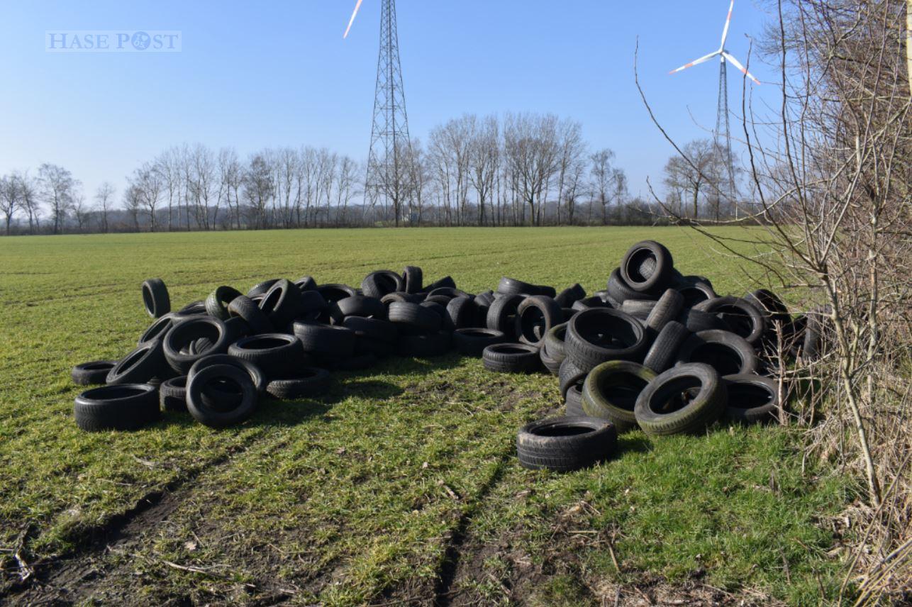 Unbekannte haben am 3. März eine große Zahl alter Reifen auf einem Feld bei Voltlage entsorgt. Die Polizei bittet um Hinweise.