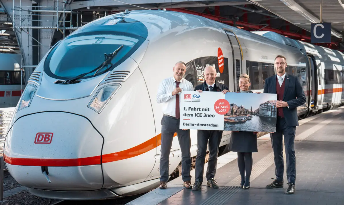 Seit Mittwoch (24. September) setzt die Deutsche Bahn auf der Verbindung zwischen Berlin und Amsterdam erstmals den ICE 3neo ein – und das deutlich früher als ursprünglich angekündigt. Schrittweise ersetzt der Hochgeschwindigkeitszug die in die Jahre gekommenen Intercitys. Den Auftakt machte am Nachmittag ein über Osnabrück verkehrender Zug ab Berlin Hauptbahnhof in Richtung Amsterdam. Schon ab dem 1. November wird die gesamte Linie ausschließlich mit ICE 3neo betrieben.