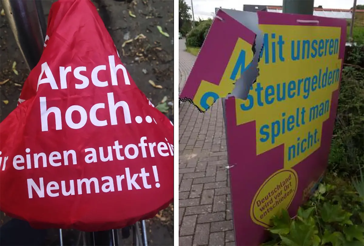 Zudem sei es aus Sicht der JuLis heuchlerisch, bei anderen einen frühen Start in den Wahlkampf zu monieren und parallel die Fahrräder in der Innenstadt mit SPD-Sattelschonern zum autofreien Neumarkt zu versehen.