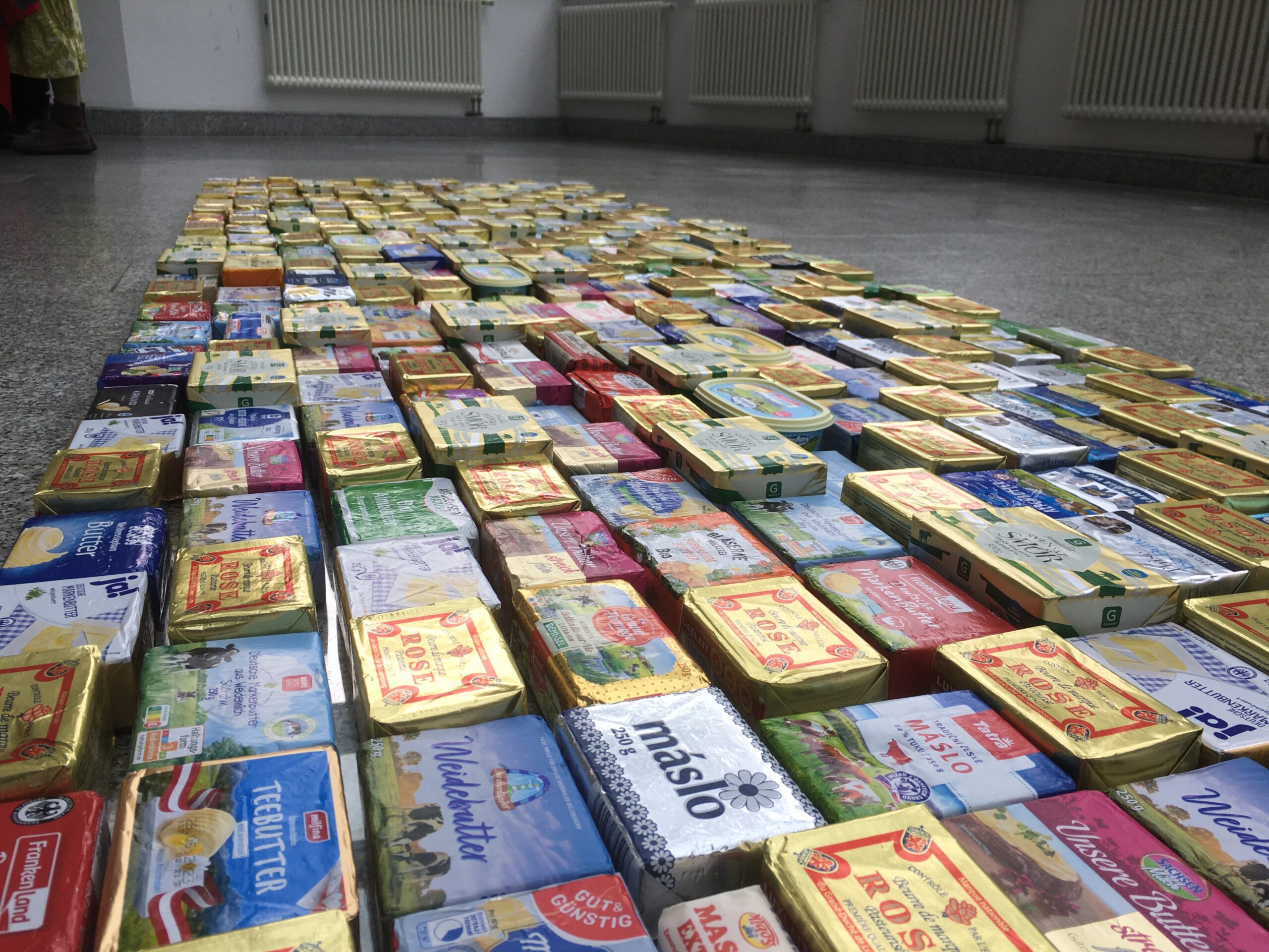 Im Foyer des Osnabrücker Stadthauses liegen mehr als 300 Butterpäckchen auf dem Boden. Genauer gesagt: 375+1. Die HASEPOST hat sich das angesehen und nachgefragt, was es damit auf sich hat.