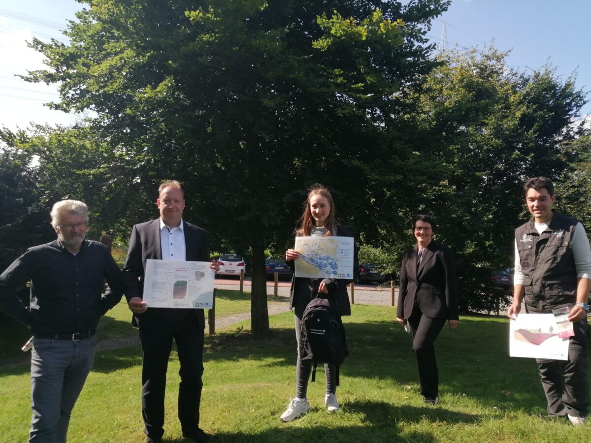 Foto: v.l. Hartmut Escher, Christian Weber, Alexandra Semenova, Abteilungsleiterin Bodenschutz Astrid Uhlenbusch, Geologe Dr. Tobias Fischer