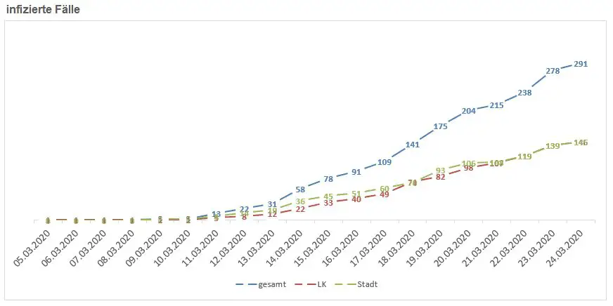Es mag an den nur begrenzten Laborkapazitäten, einer womöglich hohen Dunkelziffer oder am Erfolg der inzwischen getroffenen Maßnahmen liegen, jedenfalls zeigen die offiziellen Zahlen von Stadt und Landkreis Osnabrück auch weiterhin keine exponentielle Zunahme an festgestellten Neuinfektionen mit dem Coronavirus.