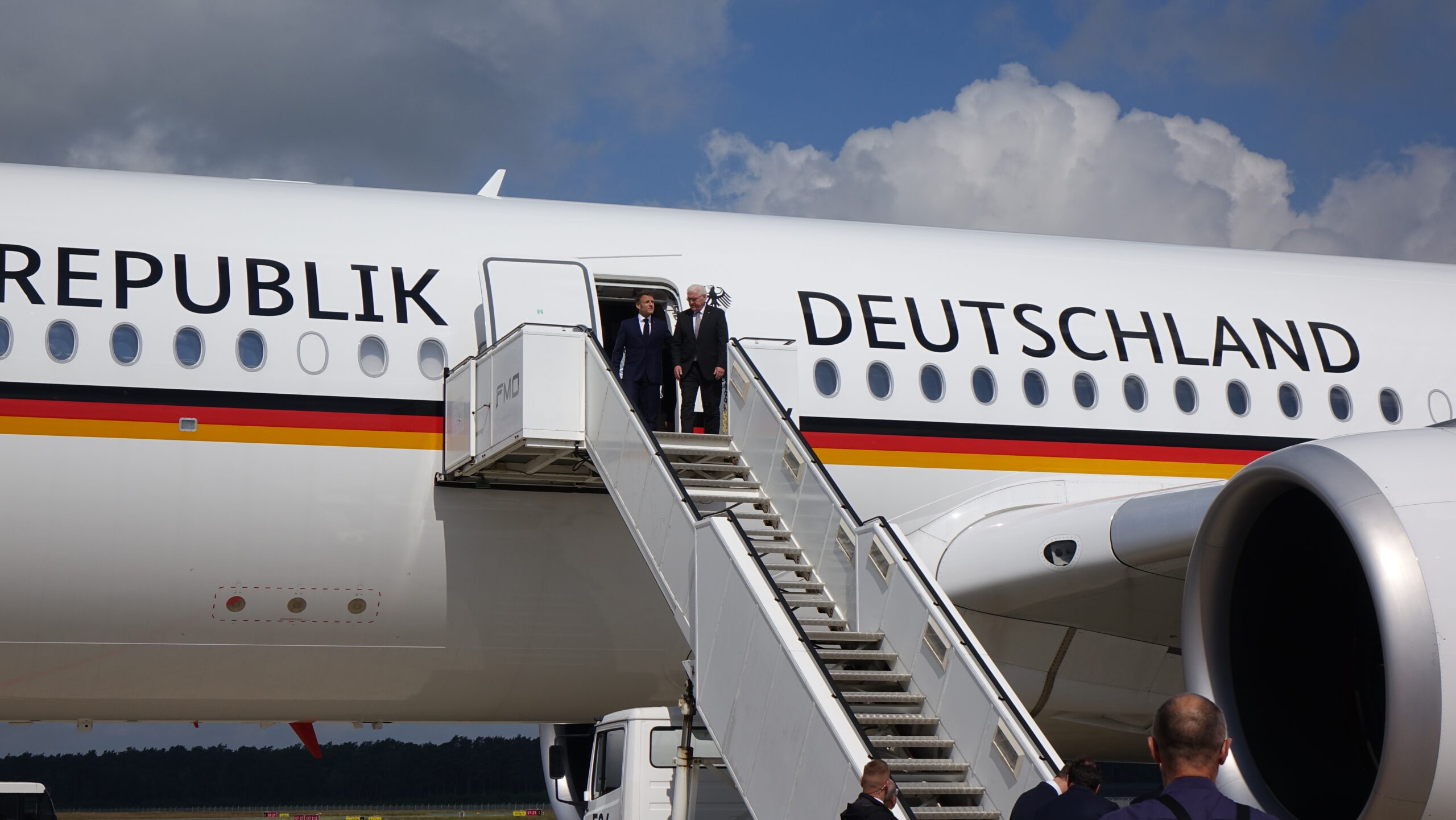 Westfälischer Friedenspreis: Macron und Steinmeier am FMO gelandet