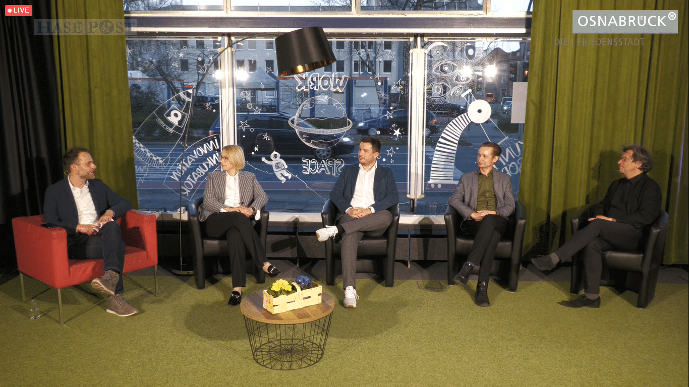 Am Dienstagabend trafen sich die Oberbürgermeisterin und der Stadtbaurat mit Martin Randlhoff, Wissenschaftler an der Universität Dortmund und Betreiber des Blogs „Zukunft Mobilität“, und Jörg Müller, Inhaber der Agentur Lots* in Leipzig, im Projektbüro Mobile Zukunft am Berliner Platz, um knapp zwei Stunden über die Zukunft des Verkehrs in Osnabrück zu diskutieren. Die Veranstaltung wurde vom Stadtwerkesprecher Marco Hörmeyer moderiert und online übertragen.