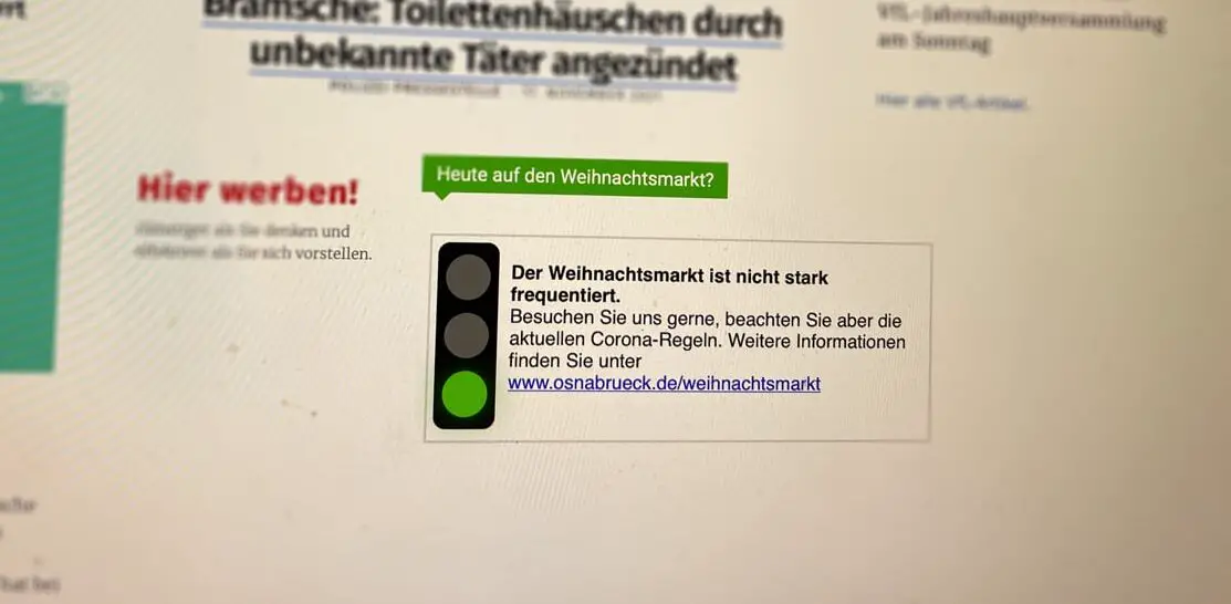 Rot, gelb oder grün: Wer den Weihnachtsmarkt lieber besuchen möchte, wenn es nicht so voll ist, kann auf eine digitale Ampel zurückgreifen. Diese gibt in den bekannten Farben an, wie viel gerade los ist. Die Ampel ist neben der Osnabrück-App und der Website der Stadt seit Mittwoch zusätzlich auf der Hasepost-Website zu sehen.
