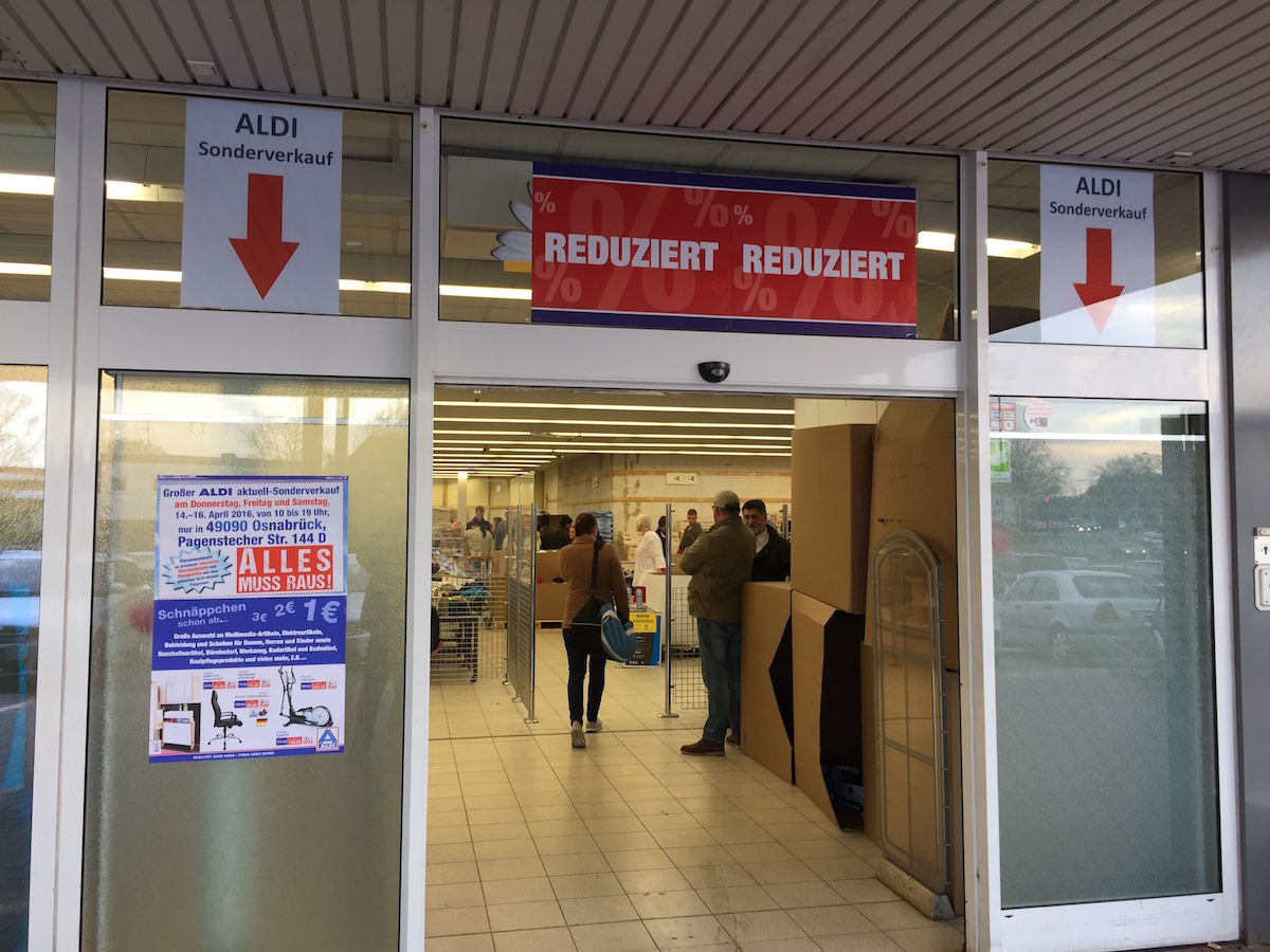 Nun „lockt“ vom 7. bis 9. Juli eine Neuauflage an die Pagenstecherstraße. Direkt neben dem „regulären“ Discounter, im sonst leerstehenden Ladenlokal der ehemaligen Ihr Platz Filiale, wird bis Samstag wieder zu deutlich reduzierten Preisen abverkauft, was im Laden niemand haben wollte.