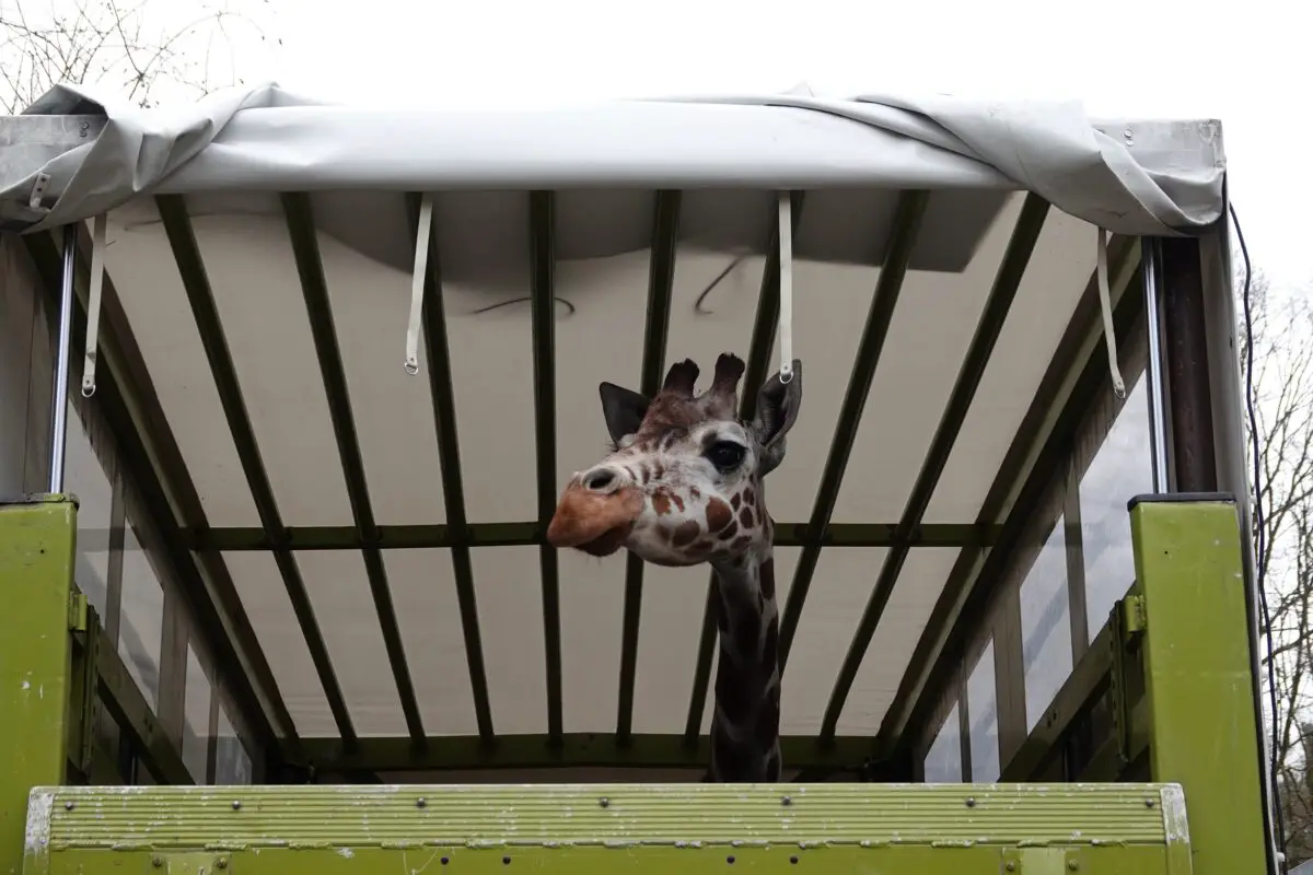 Herausfordernder Transport der betagten Giraffe