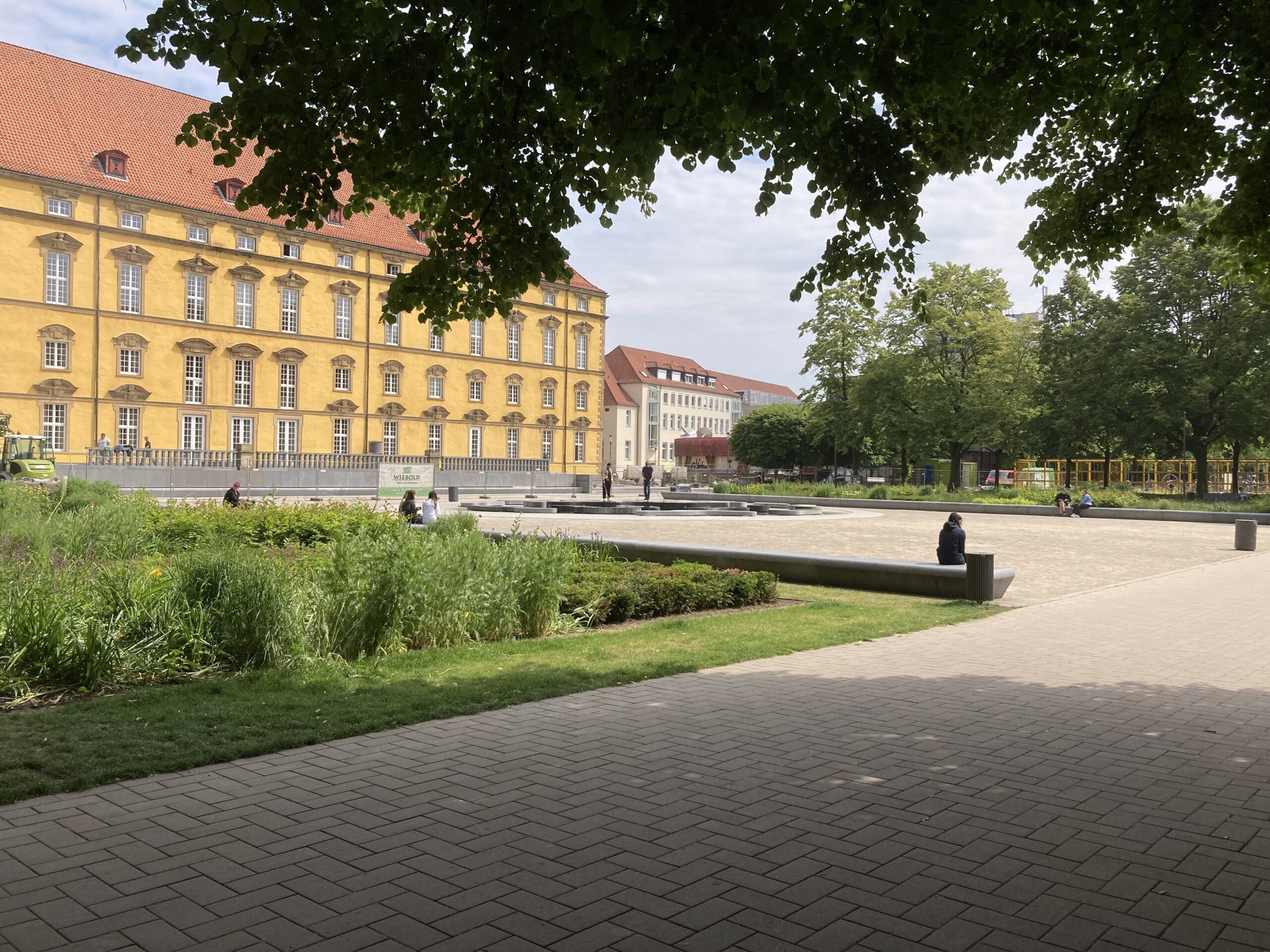 Hinter den neuen Sitzgelegenheiten im Schlossgarten steckt eine Idee von Stadtbaurat Frank Otte. Der Grünen-Politiker ließ sich vor mehreren Jahren auswärtig von lose aufgestellten Stühlen und Sesseln begeistern, im Mai konnte die Idee endlich auch in die Friedensstadt adaptiert werden. Acht Stühle und zwölf Sessel stehen – beziehungsweise standen – seitdem im Schlossgarten und konnten dort beliebig von A nach B über den grau asphaltierten Boden rund um den Springbrunnen geschoben werden.