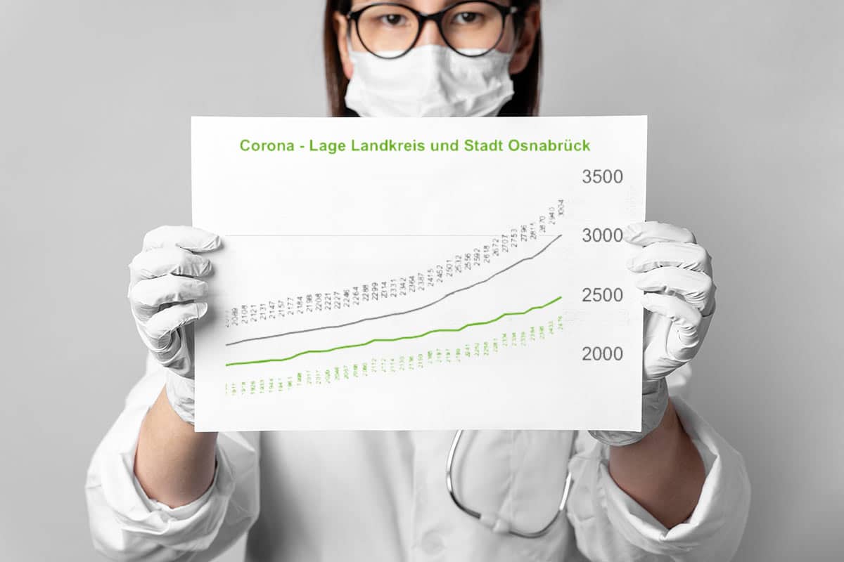 Vor genau einer Woche berichteten wir auf Basis der täglich vom gemeinsamen Gesundheitsdienst von Stadt und Landkreis Osnabrück veröffentlichten Daten, dass sich die Zahl der innerhalb von 24 Stunden festgestellten Corona-Neuinfektionen verdoppelt hat. Inzwischen hat sich auch die Zahl der insgesamt aktuell mit dem tückischen Virus infizierten Stadtbewohner knapp verdoppelt.