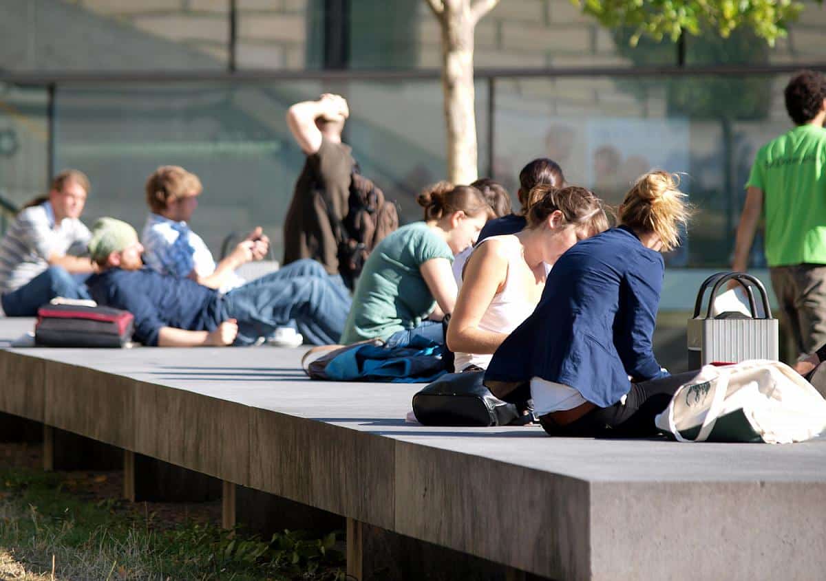 Foto: Junge Leute vor einer Universität, über dts Nachrichtenagentur