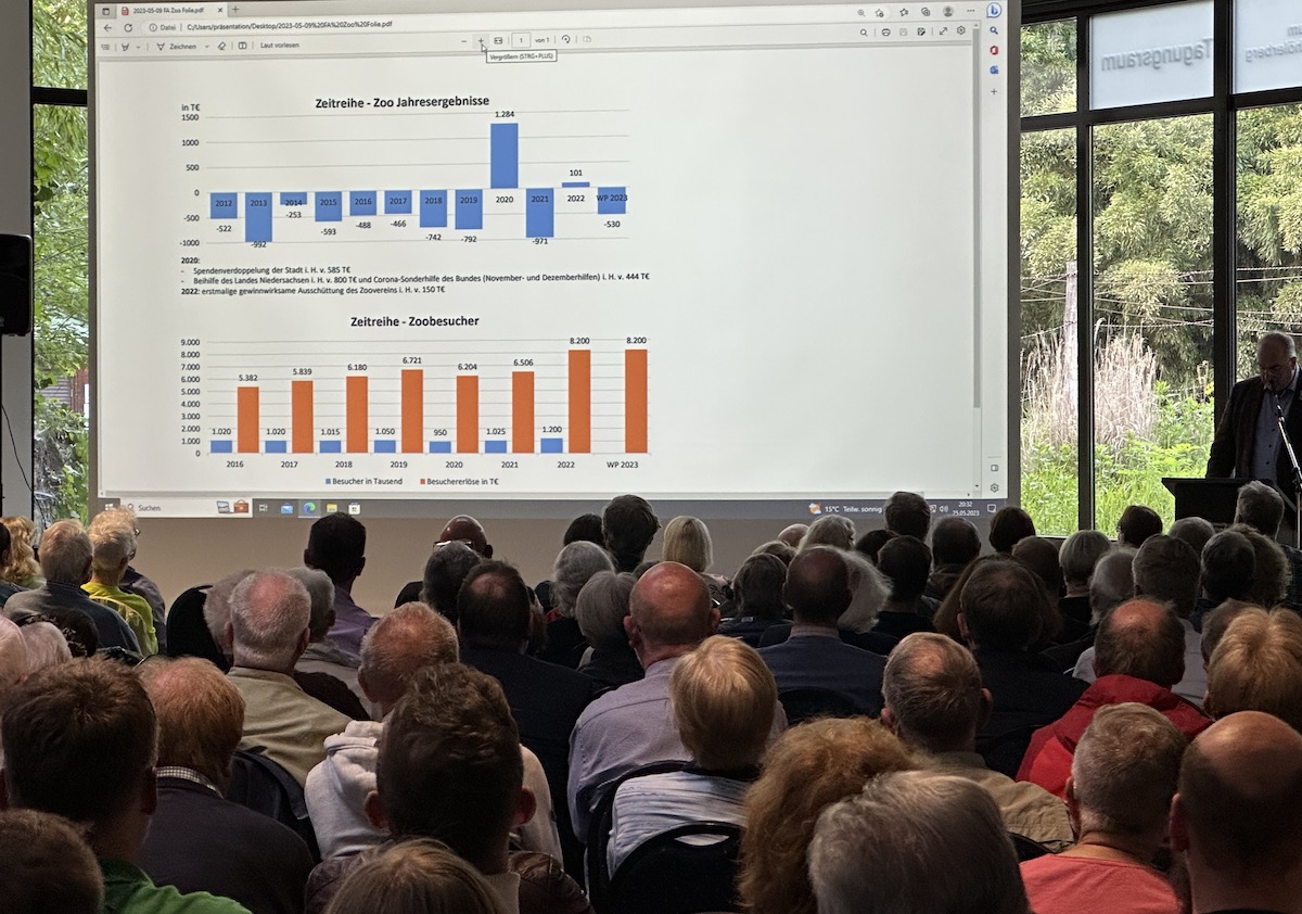 „Warum hat das Präsidium nicht früher erkannt, dass die Geschäftsführung problematisch sei?“ Gleich mehrere Fragen der Zoo-Mitglieder kreisten um die Rolle des Präsidiums in den vergangenen Jahren. „Corona“ und „wie überleben wir diese Krise“ standen bis vergangenes Jahr im Vordergrund, erläuterte Zoo-Präsident Brickwedde. Selbstkritisch reflektierte Beisitzer Marco Athen, dass er aber in den vergangenen Monaten sich selbst häufig diese Frage gestellt habe. Rückblickend hätte man sich wohl eher von dem Geschäftsführer trennen sollen. „Wir haben aber die enormen Verdienste von Herrn Busemann abgewogen“, die jeweiligen Einzelkonflikte erschienen im Vergleich zum Anfang noch klein. In Summe habe es aber so nicht weitergehen können.