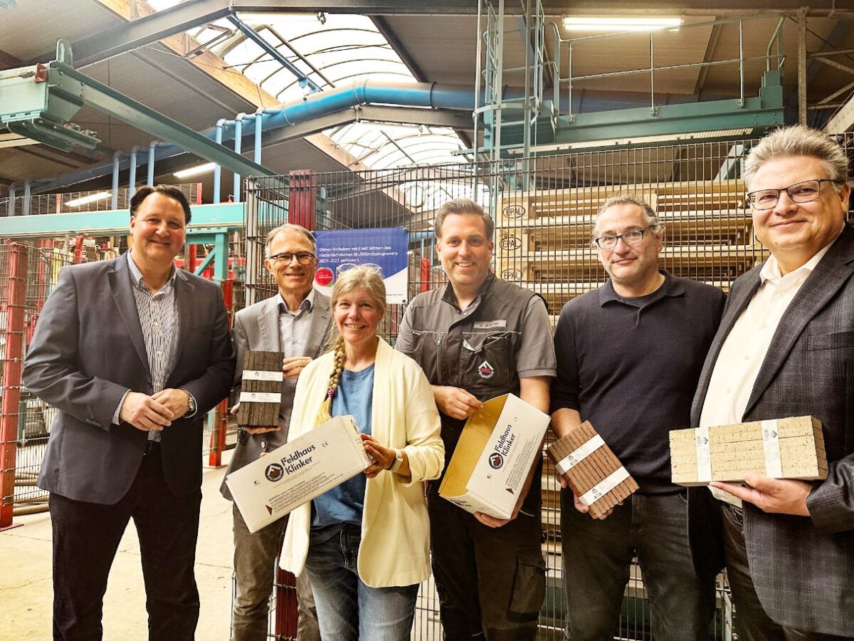 Realisiert wurde die ressourceneffiziente Optimierung der Flachriemchenverpackung mit Unterstützung der WIGOS Wirtschaftsförderungsgesellschaft Osnabrücker Land und der RKW Nord GmbH. Einen Förderantrag von rund 650.000 Euro im Rahmen des Förderprogramms „Ressourceneffizienz und Kreislaufwirtschaft“ haben sie für das Projekt ermöglicht. Und Alexander Schröder, Betriebsleiter bei Feldhaus Klinker, ist sehr zufrieden mit dem Projektverlauf: „Die WIGOS hat uns an einen Tisch mit der RKW Nord GmbH und dadurch erst das Projekt ans Laufen gebracht. Auf kurzem Wege haben wir effizient zusammengearbeitet.“ Niedersachsens Umweltminister Christian Meyer hatte jüngst persönlich den positiven Förderbescheid an die Unternehmensleitung übergeben.