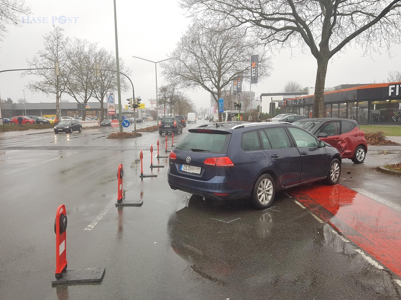 Am Dienstagvormittag (01.02.2022) wurde ein PKW auf der Hannoverschen Straße in Osnabrück-Fledder von einem anderen Wagen erfasst.