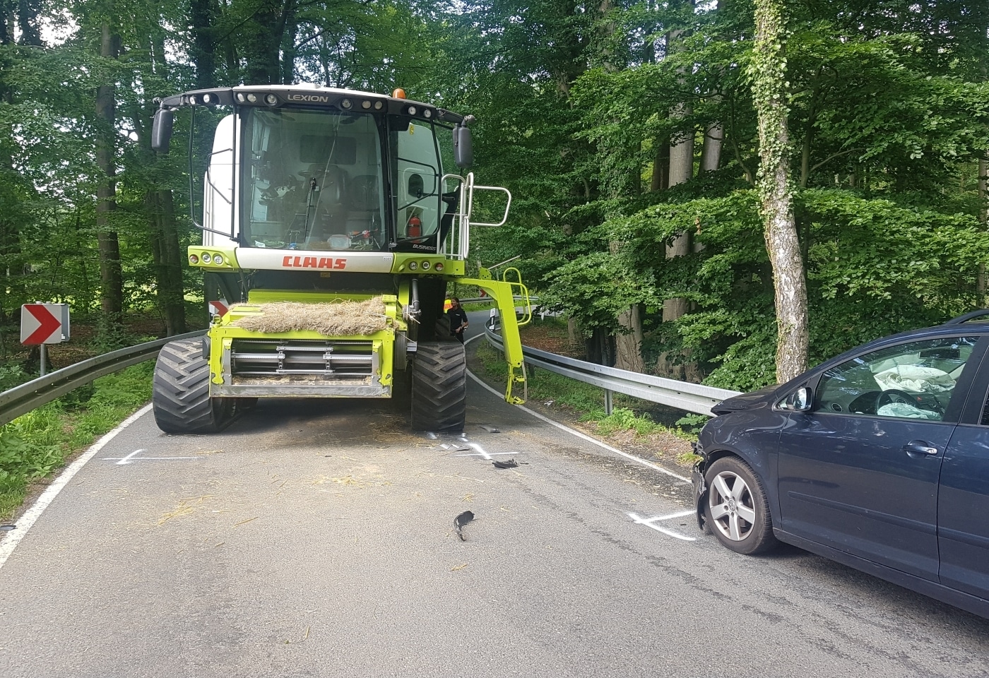 Die Fahrzeuge prallten versetzt gegeneinander und das Auto wurde zurückgedrückt. Auch der schwere Mähdrescher wurde beim Aufprall etwas nach hinten geschoben. Fehlende Bremsspuren und eine entsprechende Zeugenaussage deuten darauf hin, dass der PKW vermutlich ungebremst auffuhr. Der Mähdrescher soll nach einer Notbremsung vor dem Aufprall bereits zum Stehen gekommen sein.