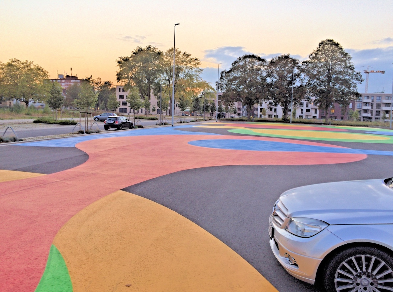 Wie groß dieser bunte Parkplatz denn sei, wollte man uns beim Presseamt dann jedoch nicht mehr verraten. Eine entsprechende Nachfrage blieb, wie auch die Frage nach den Kosten für das Aufbringen der Farbe, unbeantwortet.